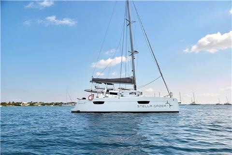 Step aboard S/Y Stella Gazer, a 2018 Fountaine Pajot Saona 47 that blends comfort, elegance, and performance. With a spacious flybridge, forward lounge area, and stylish interiors, this 4-cabin catamaran is ideal for families or groups seeking a luxurious escape. Whether you are relaxing in the sun or enjoying private en-suite accommodations, Stella Gazer promises unforgettable, customized trips around Nassau, Exumas, and