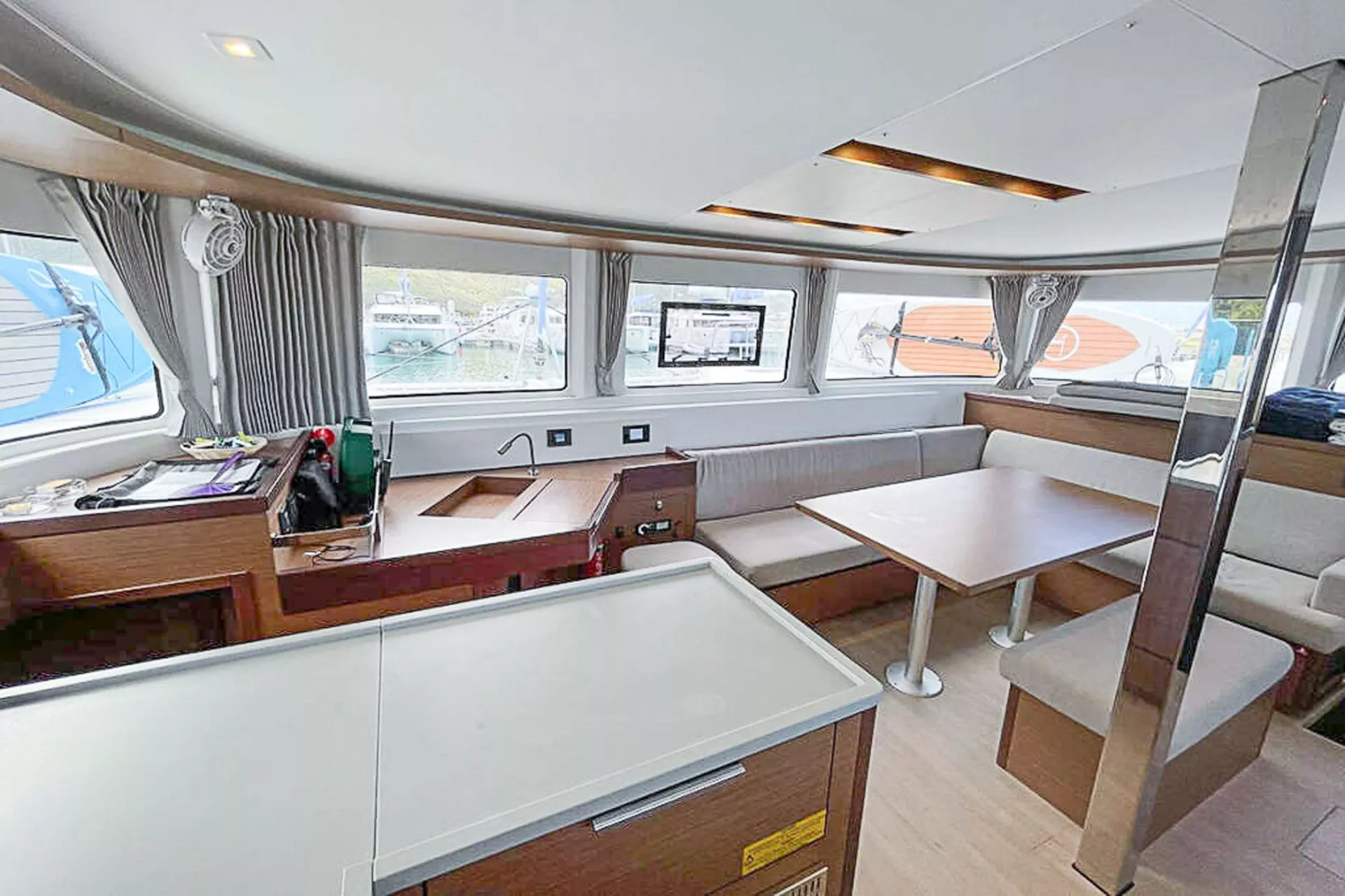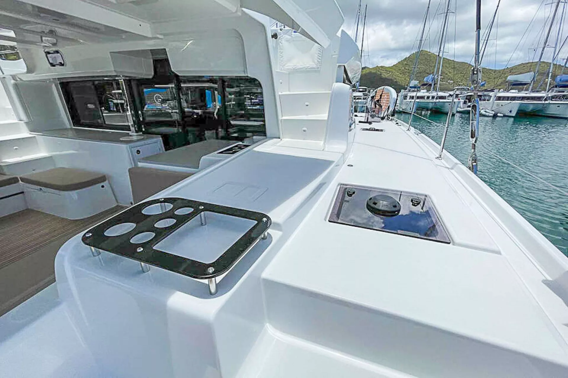 OCEANS 8 is a sleek 2021 Lagoon 46 sailing catamaran built for effortless Virgin Islands adventure with a polished, modern feel. Sleeps up to 6 in 3 spacious Queen cabins, each with a private ensuite—perfect for couples, friends, or a small family who want comfort without compromise. A highlight is her expansive aft cockpit, seamlessly integrated into the deck line for panoramic views, easy flow, and relaxed alfresco dining. The flybridge doubles as helm and sun lounge—your go-to spot for sea breezes, sail watching, and sunset cocktails. Inside, she feels surprisingly roomy for her class, filled with natural light and refined finishes that invite you to unwind and connect. Simple, stylish, and made for island-hopping—OCEANS 8 is the kind of charter that feels easy from day one.