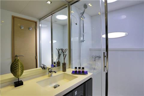 She has one owners suite, 3 queen size double cabins - all with private facilities. Each cabin is equipped with TV, DVD and stereo system.