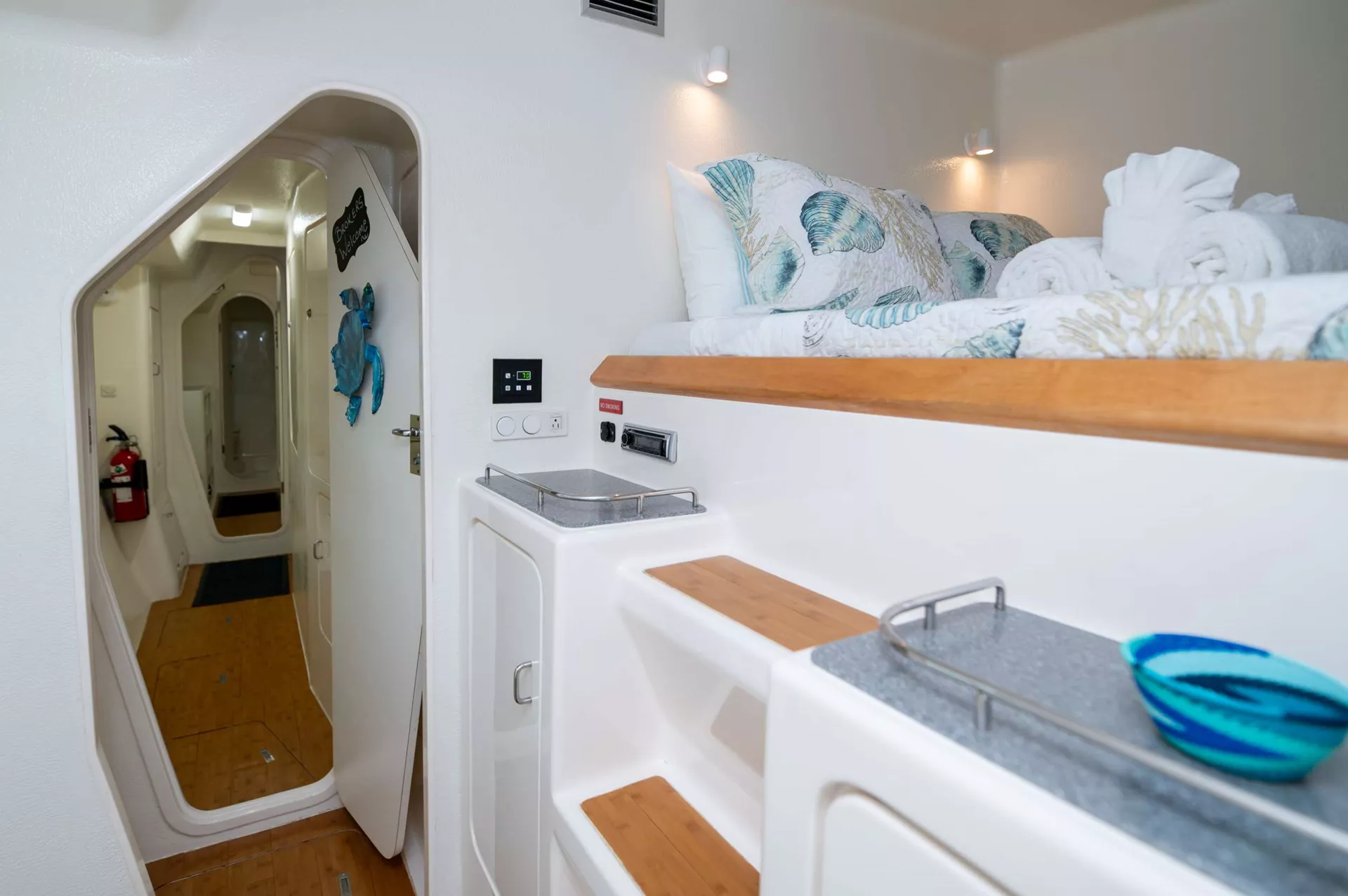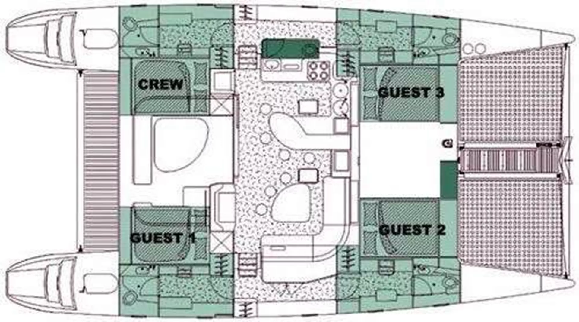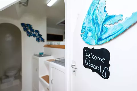 Listing pricing is for 3 ensuite queen cabins each with private bath with electric toilet and shower.