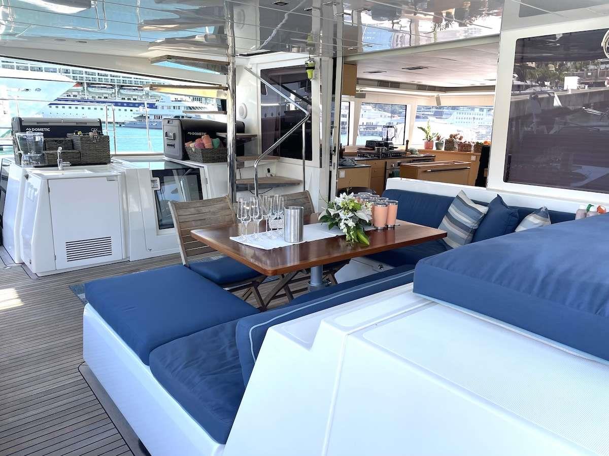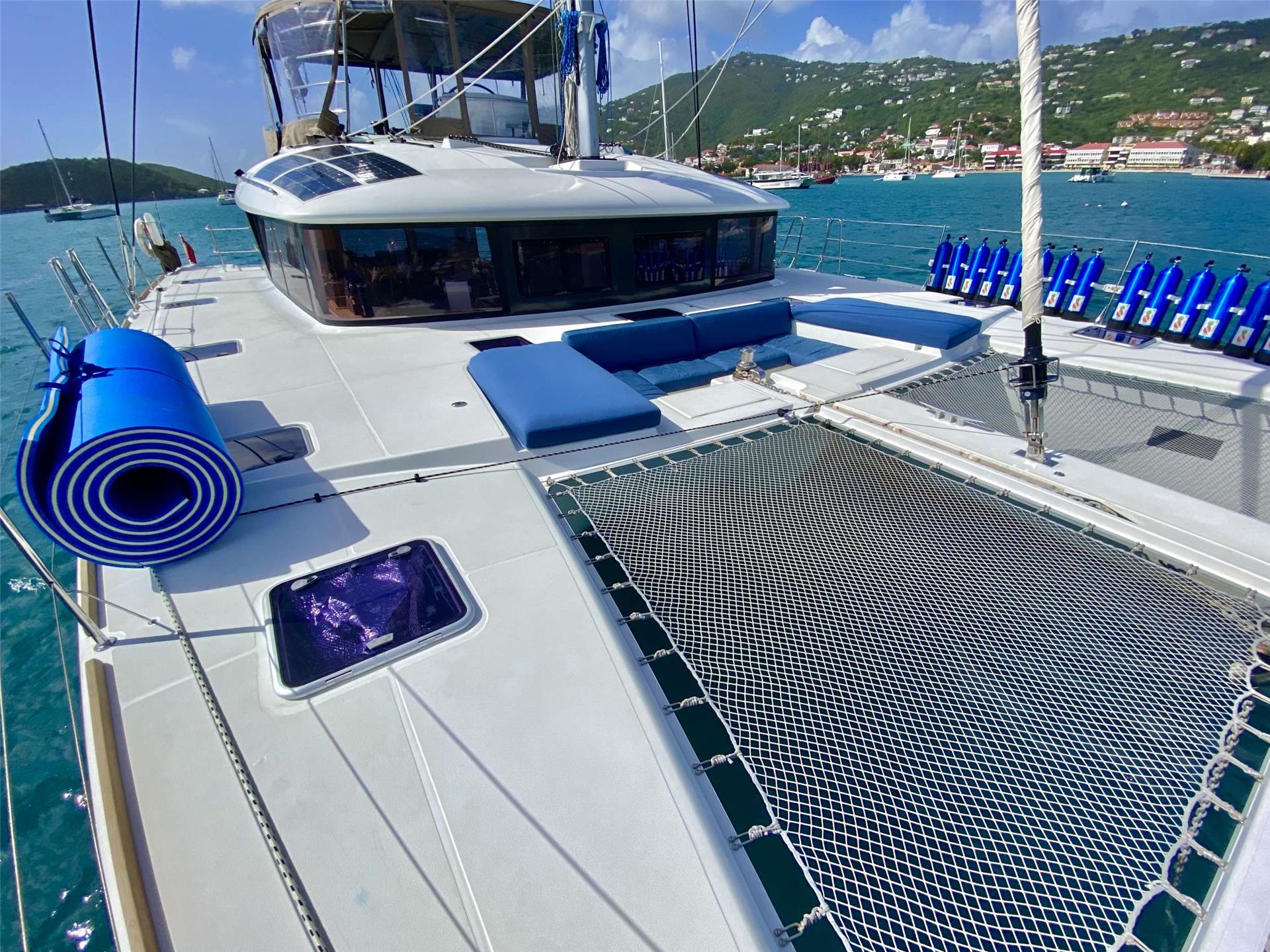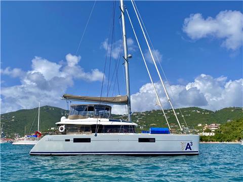 A3 is a stunning 2016 56' Lagoon Catamaran featuring 1 master queen cabin and 3 spacious cabins with queen-sized beds, each with private ensuite baths including electric heads, vanity and separate showers. She boasts multiple areas to sit and relax or sip a cocktail and enjoy the cool trade winds over the beautiful blue Caribbean water! The salon will comfortably seat up to 8 guests in comfort for lounging or dining. The exterior offers alfresco dining for up to 8 guests, top deck seating and lounge area in front of helm plus forward lower deck lounge area behind trampolines. With numerous lounging areas, there is plenty of space for gathering as a group or finding a private place to really unwind. Water toys include snorkeling gear, floating mats and tube, 2 stand-up paddle boards, e-foil, sea scooters and 3 fishing rods.
