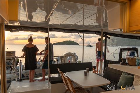 Join Captain Nim and Chef Fabiola for an island-hopping adventure on their 45-foot luxury catamaran—a 2019 Lagoon 450S, custom-outfitted for added space and uncompromising comfort.