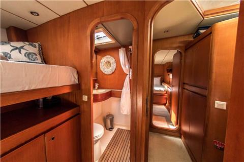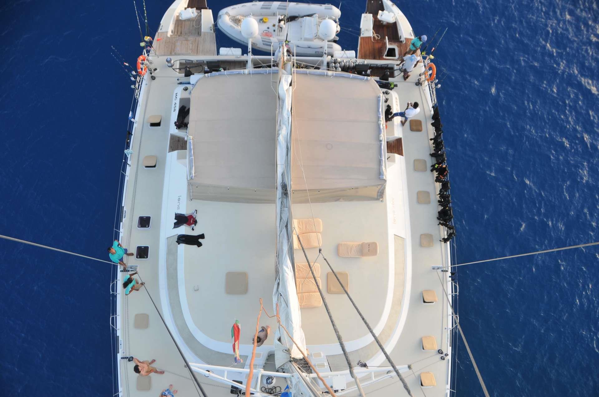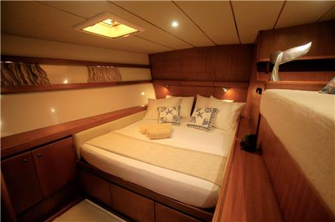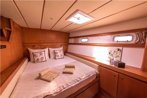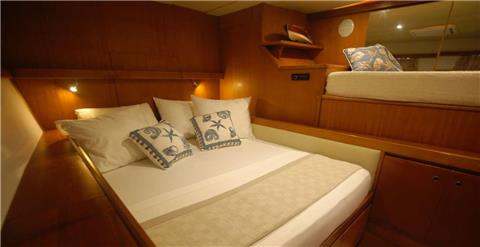 She can accommodate 12 guests in 6 comfortable cabins, with space for an additional 4 children (16 guests max). Four experienced crew, including a qualified chef are accommodated in three separate crew cabins.