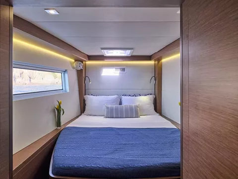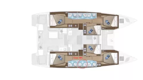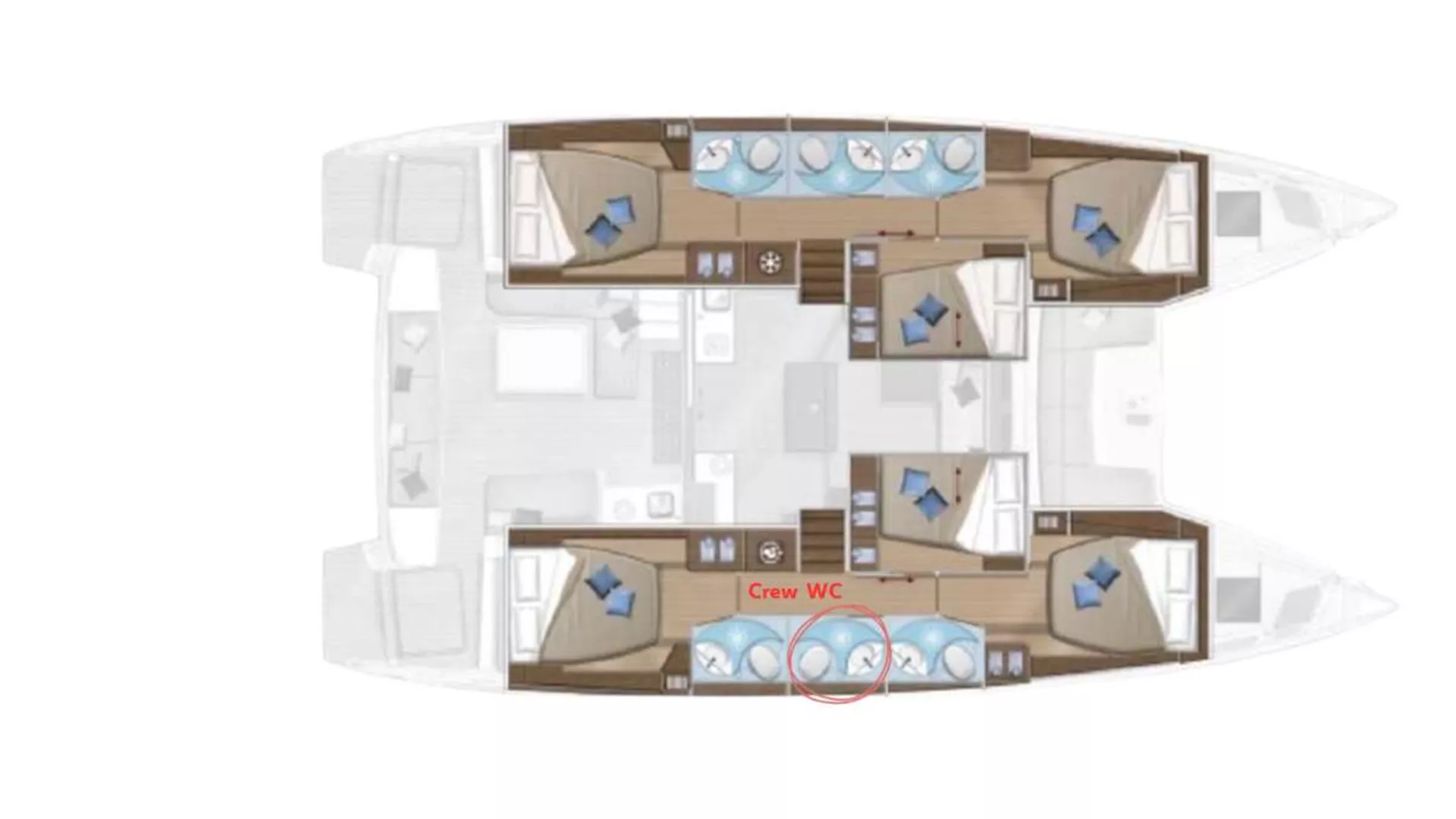 4 double cabins and 2 cabins with semi-double beds for one adult or 2 children, 5 bathrooms
