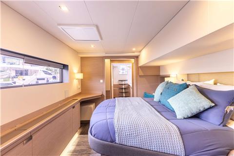 The expansive aft deck has a huge dining table where the entire group can dine together al-fresco. The sliding aft doors seamlessly open into the salon to create an ideal, indoor/outdoor environment. Krazy Kat is the popular 'galley up' layout so guests can enjoy lounging in the comfortable saloon, while watching the chef prepare their epicurean delights! The layout of Krazy Kat fully embodies the French way of life that celebrates the philosophy of 'carpe diem.'