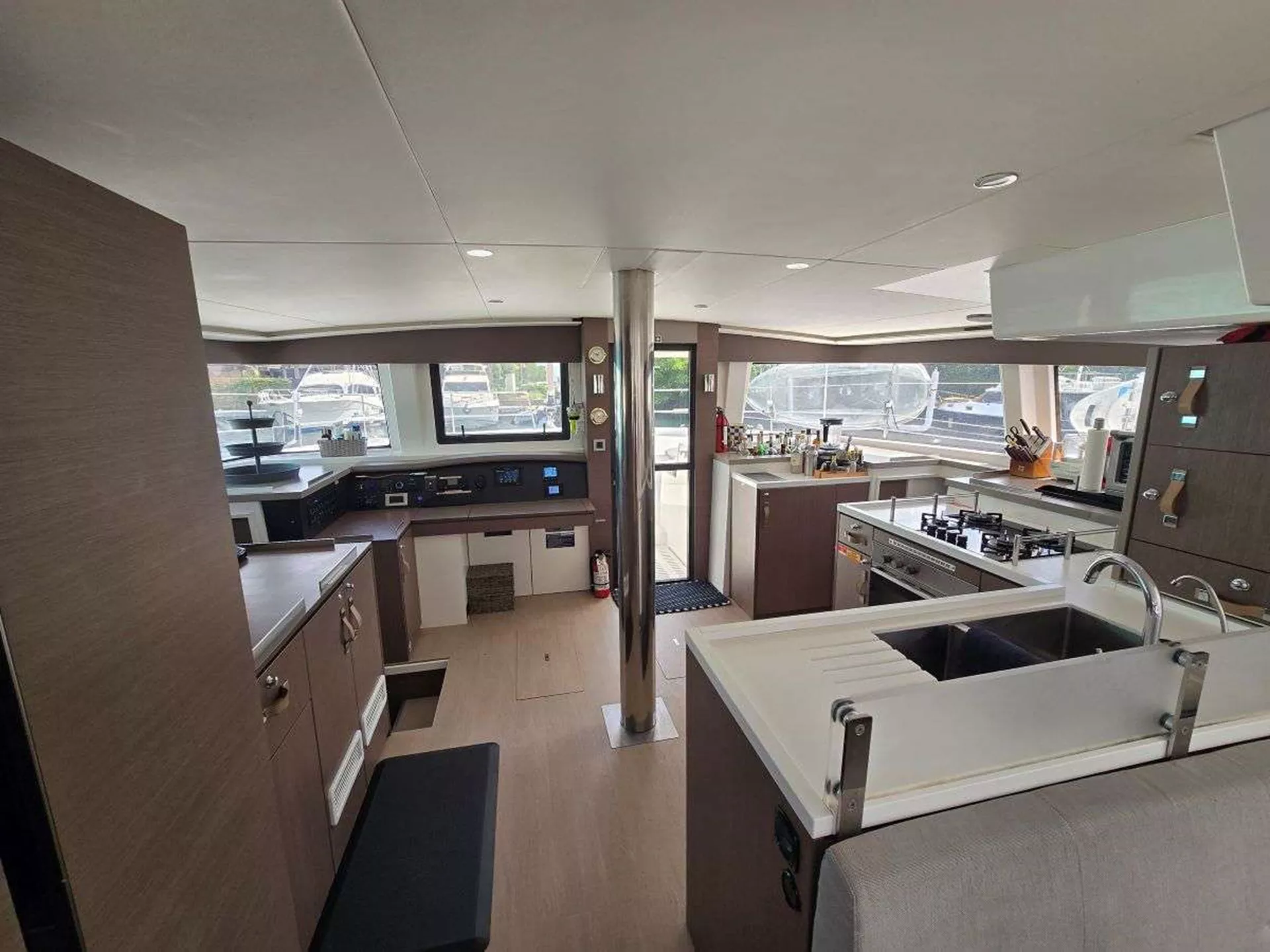 Main deck has a bright and airy main salon (fully air-conditioned) as the galley direct access to the forward cockpit lounge area.