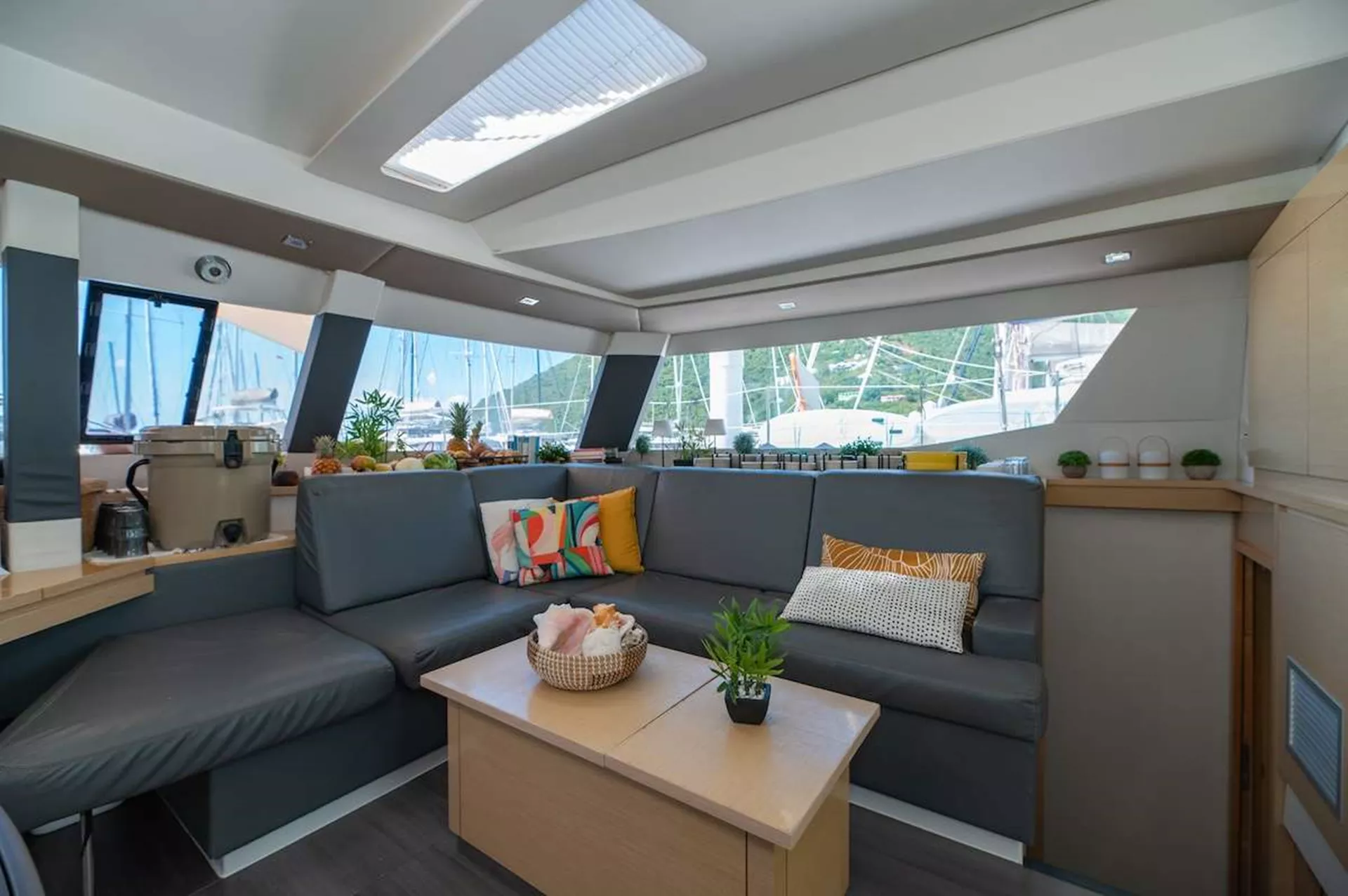 Purpose is our exceptionally elegant Fountaine Pajot Saba 50 catamaran, currently navigating the crystal-clear waters of the Caribbean. This remarkably spacious luxury yacht is designed to capture and diffuse natural light throughout the salon, galley, and cabins, creating a bright, airy, and welcoming atmosphere on board. From the moment you step aboard, you will be struck by the generous volumes dedicated to relaxation, comfort, and shared enjoyment.