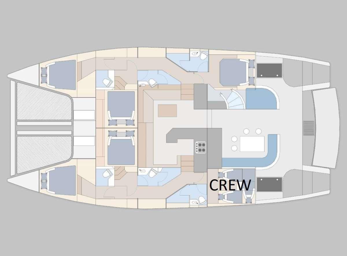 TAPAS accommodates up to 10 guests in 5 luxury cabins, each with its own en-suite head and walk in shower. All guest cabins are fully air-conditioned for guest comfort. TAPAS has a galley-up layout with all the modern amenities needed for the ultimate family and friend vacation.