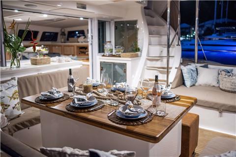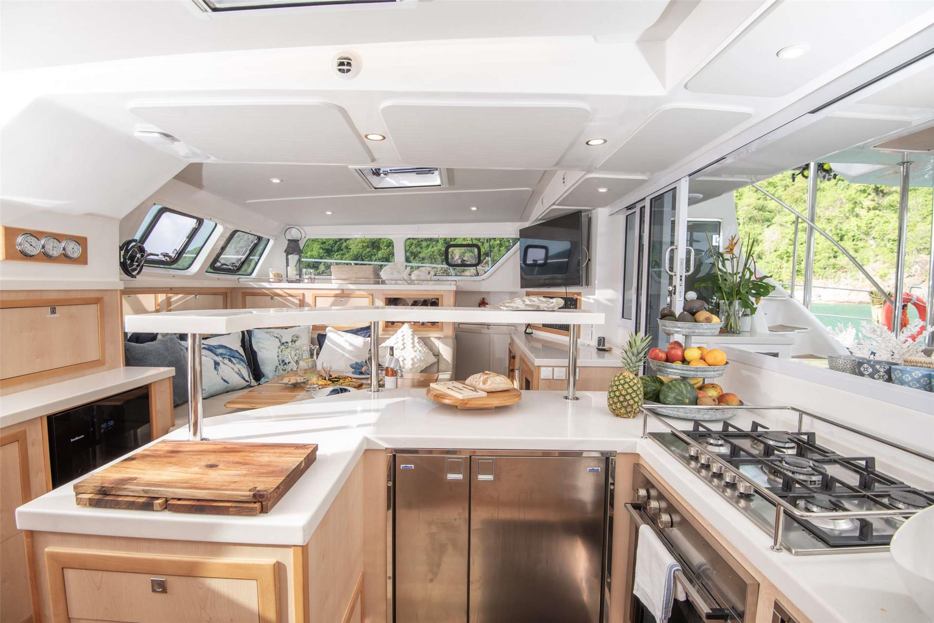 and performance. The increased freeboard and larger windows provide access to more natural light and visibility, while the new elongated design provides substantially more space in the salon, galley, cockpit and cabins, as well as increased deck space, amplified seating and larger trampolines.