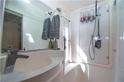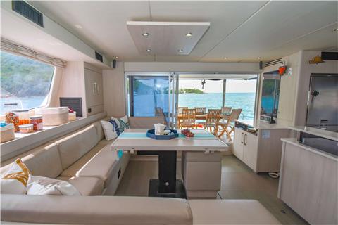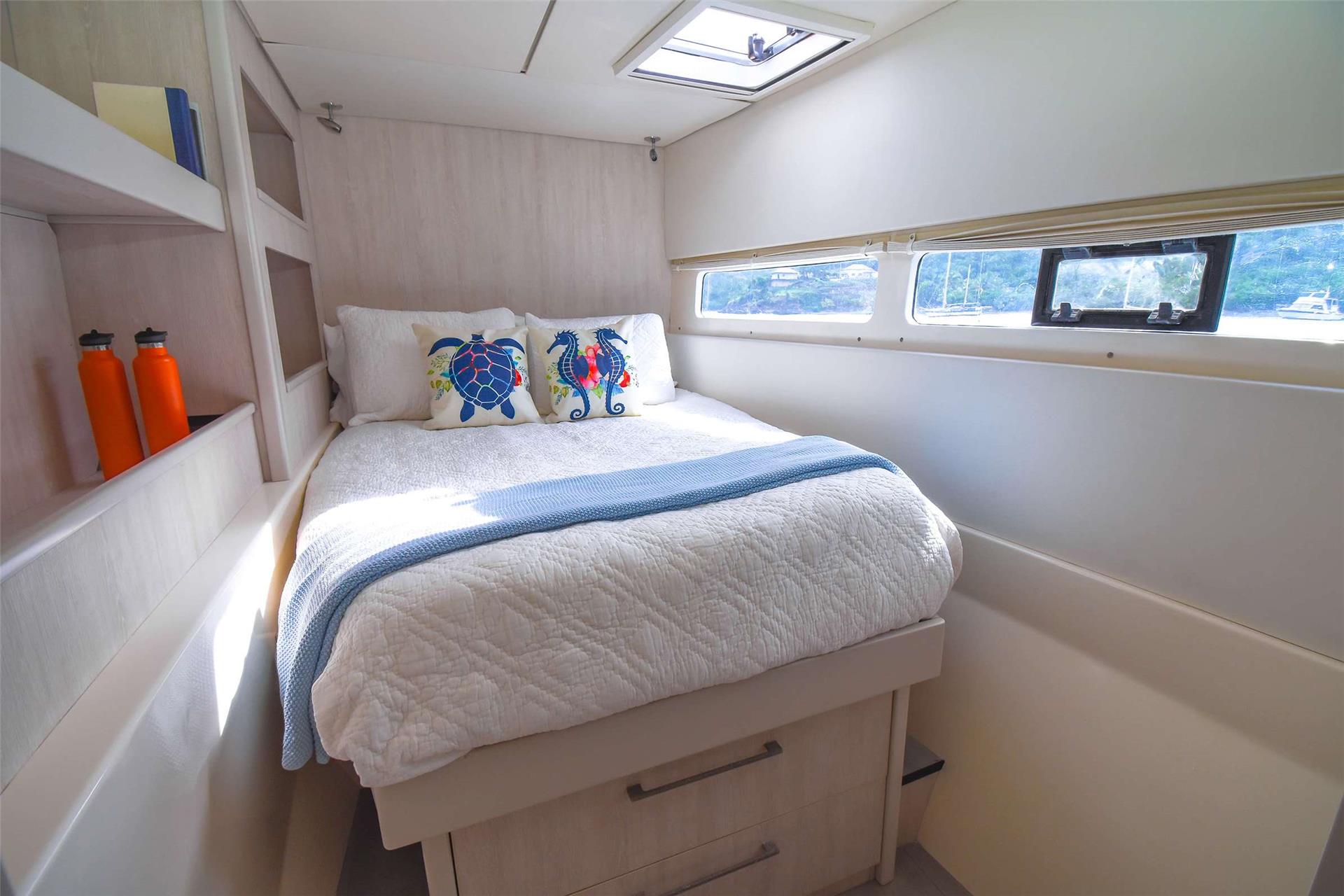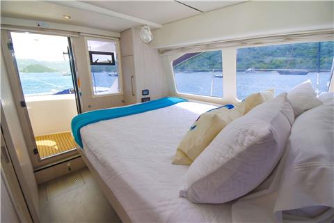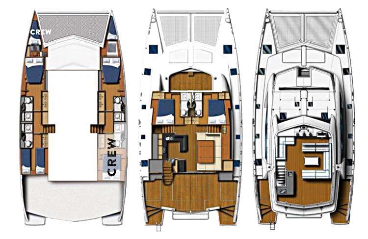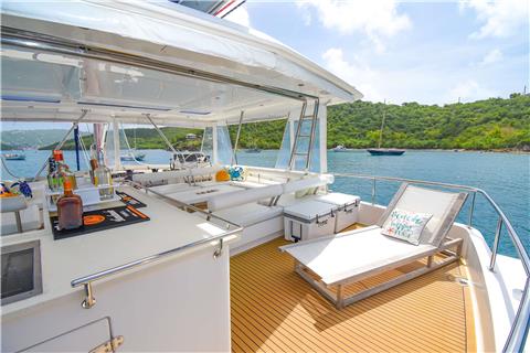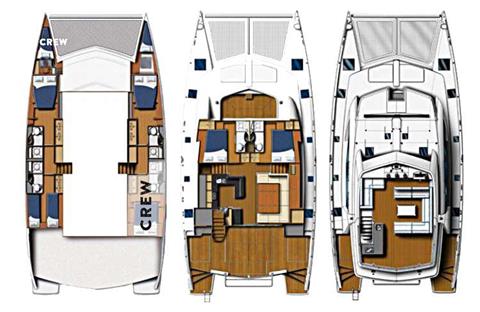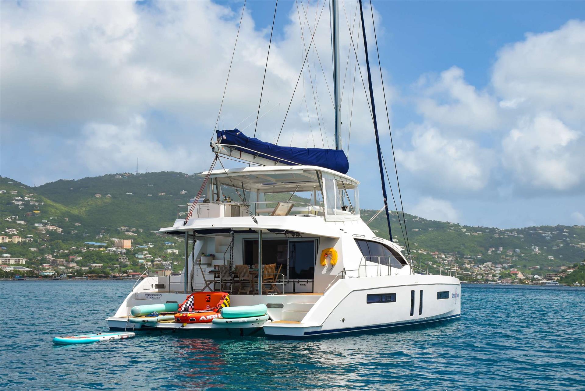Nothing compares to cruising the sea aboard the Leopard 58. Barefoot Cowboy has a spacious, split-level floor plan. On the main deck you will find two cabins opening to a forward cockpit. Three cabins below, all with private en- suite baths. All cabins are air-conditioned. Inside you will discover a well appointed galley. Meals can be enjoyed inside with wrap around seating for 10. The yacht also comes complete with a 46” flat screen TV/DVD player, onboard WiFi, Apple TV, CD stereo with MP3 connection.