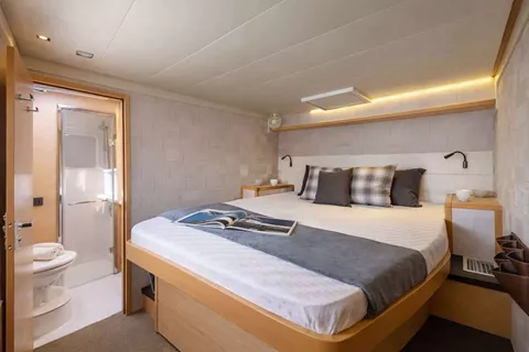 Royal Flush is a Lagoon 52 catamaran, built in 2017 and totally refitted in 2022. She can accommodate up to 12 guests in 6 en-suite cabins, of which 5 are Double and 1 Twin with upper and lower bunk beds. She offers 3 different spaces for the guests to relax, these would be the cockpit, the forward salon and the flybridge. Equipped with all the amenities of a floating hotel in combination with a professional and experienced crew of 2, surely she will offer you a great vacation experience.