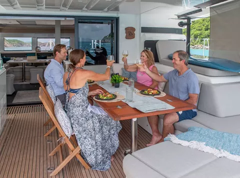 Island Hoppin' 55 is the upgrade you've been waiting for! This 2024 Lagoon 55 will make her debut at the Miami Boat Show before heading to the Bahamas and continuing south to the Caribbean, where she and her crew will continue the IHOP tradition of good food, adventure and great times! This well-appointed luxury vessel hosts up to 8 guests in accommodations fit for royalty, combined with five-star service and a seamlessly curated experience. No expense was spared in outfitting this vessel to be one of the top vacation experiences in the world!