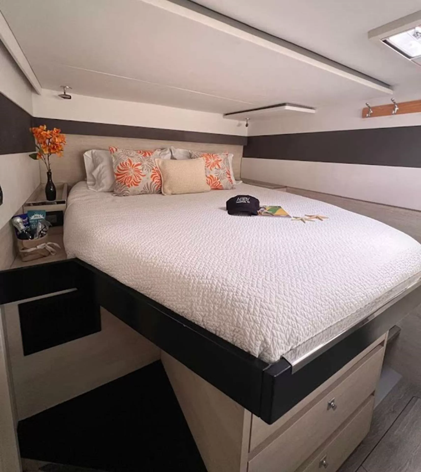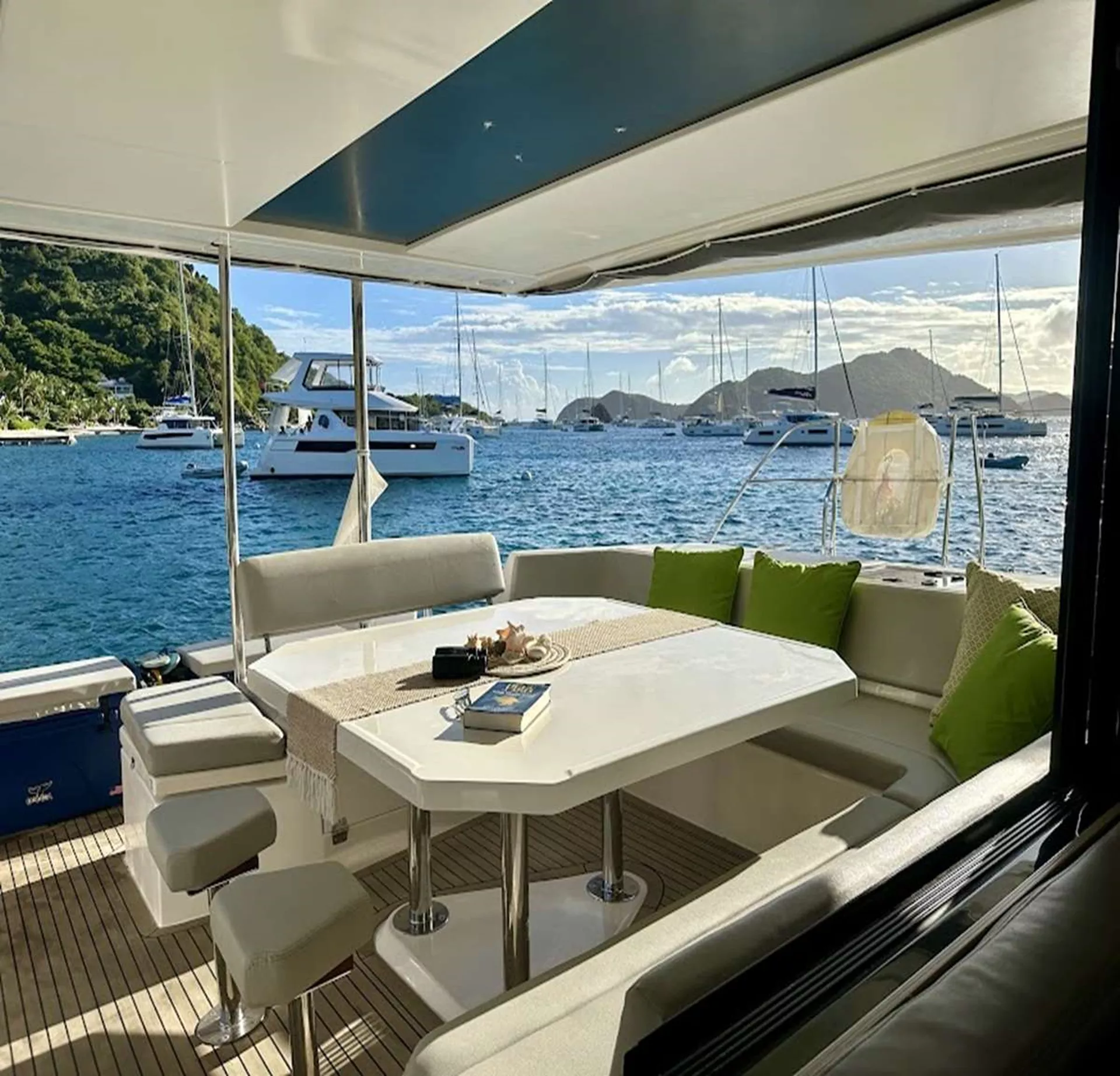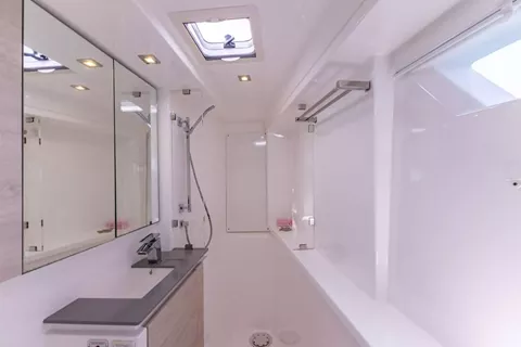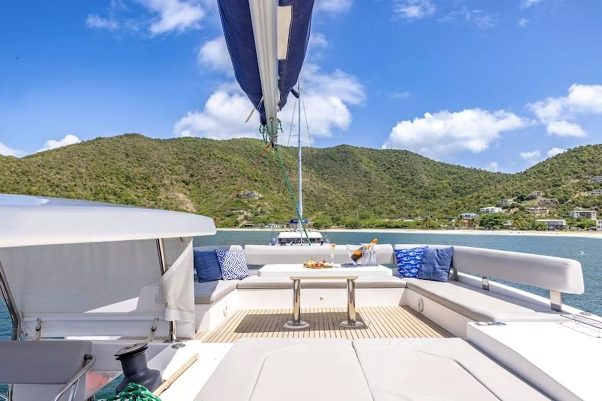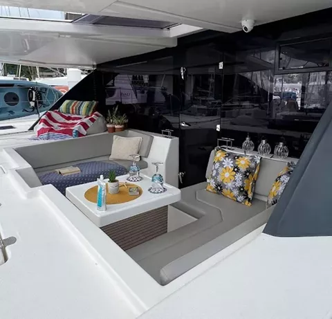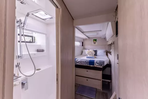 With comfortable cabins, private showers, and an open layout, this Leopard 50 luxury catamaran in the pristine British Virgin Islands is the ultimate setting to truly unwind. Enjoy nutritious, mouthwatering cuisine at the spacious onboard dining table. Sip coffee and fresh juice in the morning, and cocktails, beer, and wine in the evening.