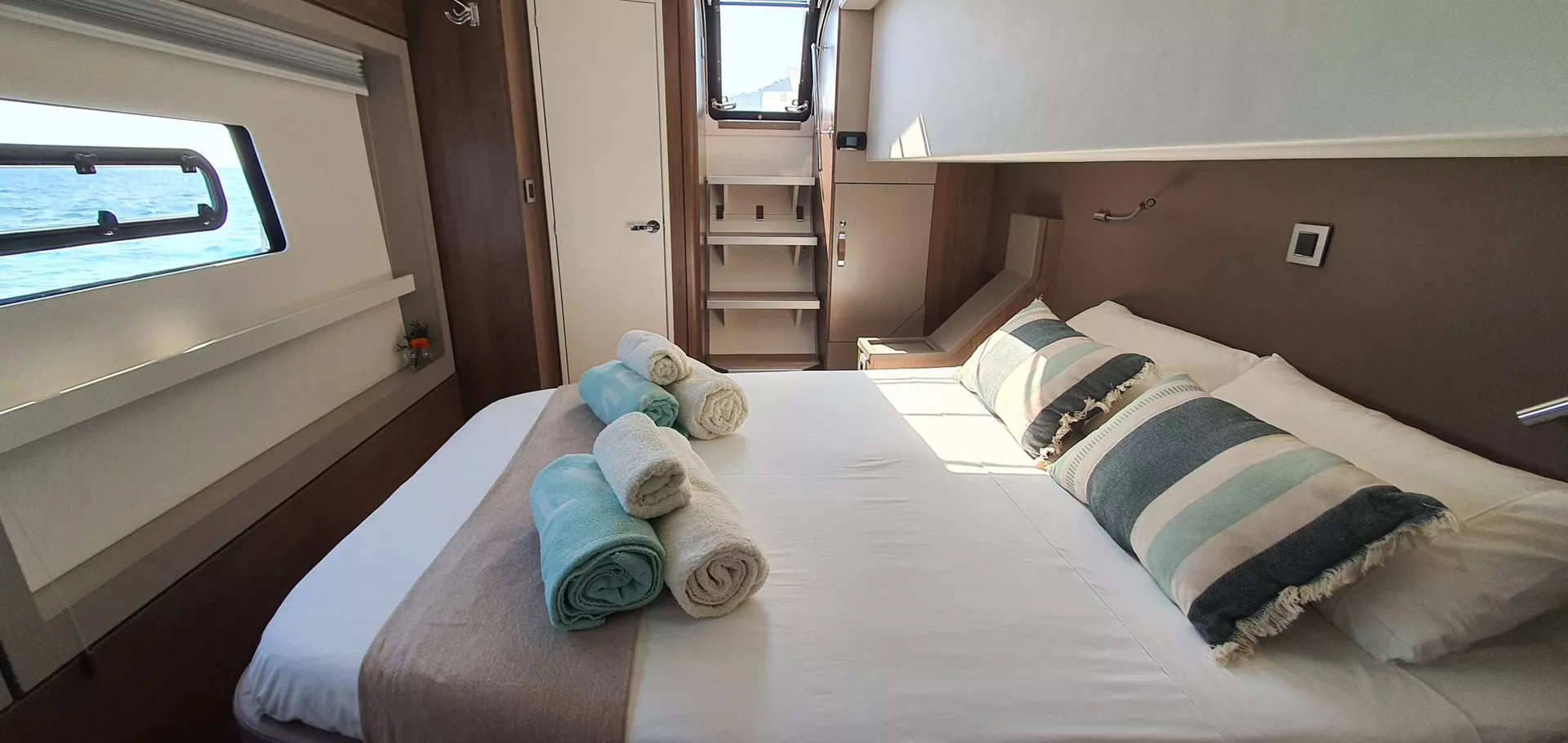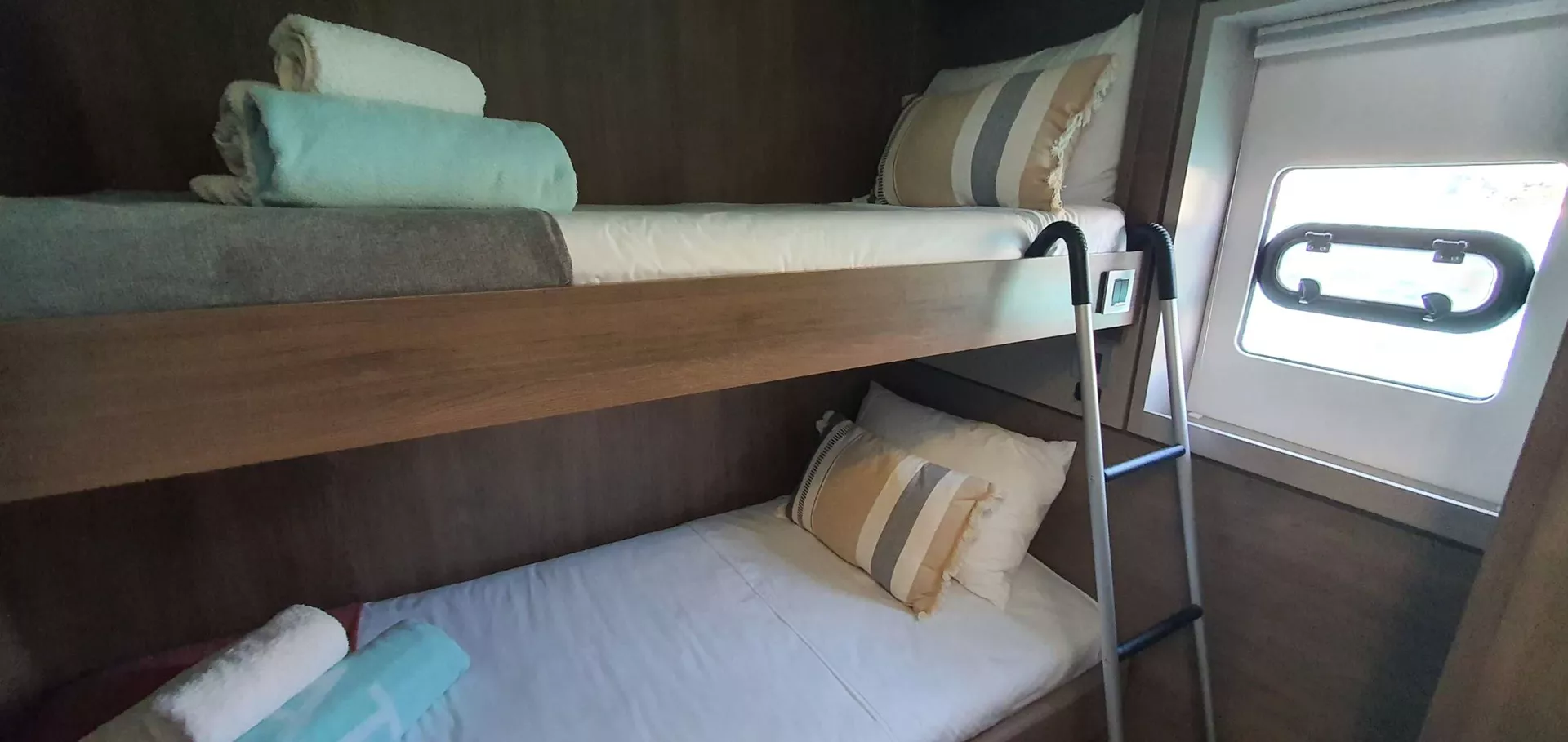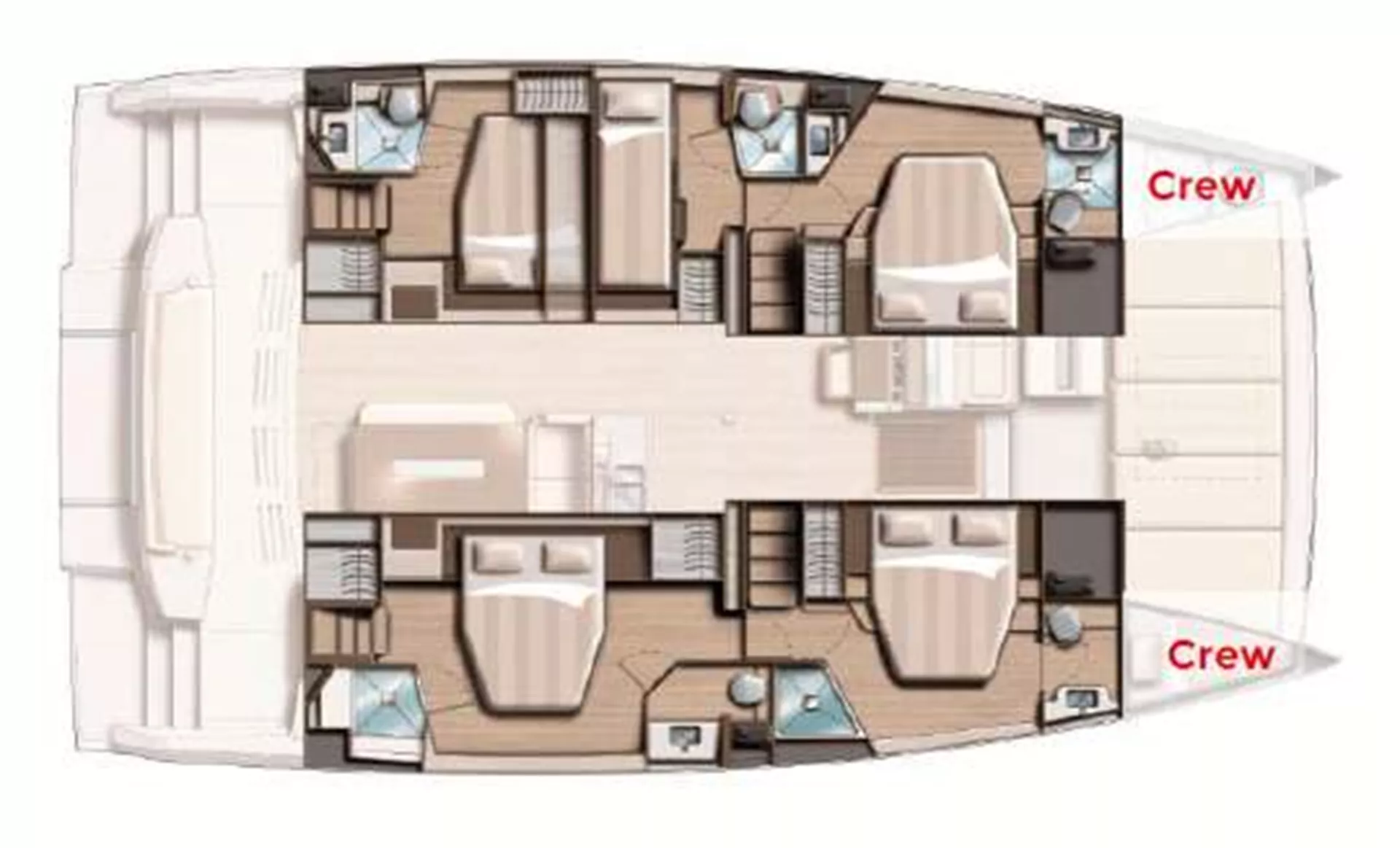Crew cabins: 1 forepeak cabin + 1 WC to share with clients