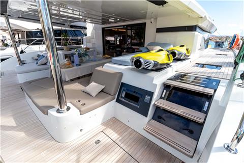 - 2 crew members (CAPTAIN & STEWARDESS), Daily preparation of 2 meals: breakfast and SIMPLE lunch OR dinner • Water toys & equipment: tender: Williams SportJet 395 (100 HP jet power), 2 x Stand Up Paddle boards, snorkelling equipment, Wakeboard, 1x Air eFoil, Sea bob F5SR (two), Donut (1pcs.), Banana (1pcs.), fishing gear (3 sets), water skis • 13% VAT. Special features: STARLINK WIFI+ LOCAL ROUTER, AIR PURIFIER: Dometic's Breathe 4500, SAFE, GUITAR, SYNTHESIZER, KARAOKE SET, PLAYSTATION 4, FISHFINDER,BIMINI ON TENDER