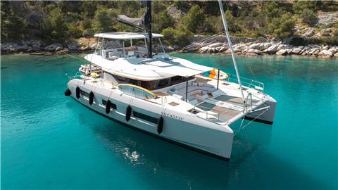 This luxurious catamaran is packed with water toys, including a Williams SportJet 395 tender, 2 stand-up paddle boards, snorkeling gear, a wakeboard, an Air eFoil, 2 Sea Bob F5SRs, a donut, banana, fishing gear, and water skis. Enjoy the latest onboard features like WIFI STARLINK, a Dometic Breathe 4500 air purifier, a safe, a guitar, a synthesizer, a karaoke set, PlayStation 4, a fishfinder, and a bimini on the tender. Book your voyage with AGENDA 55 and set sail for an unforgettable experience!