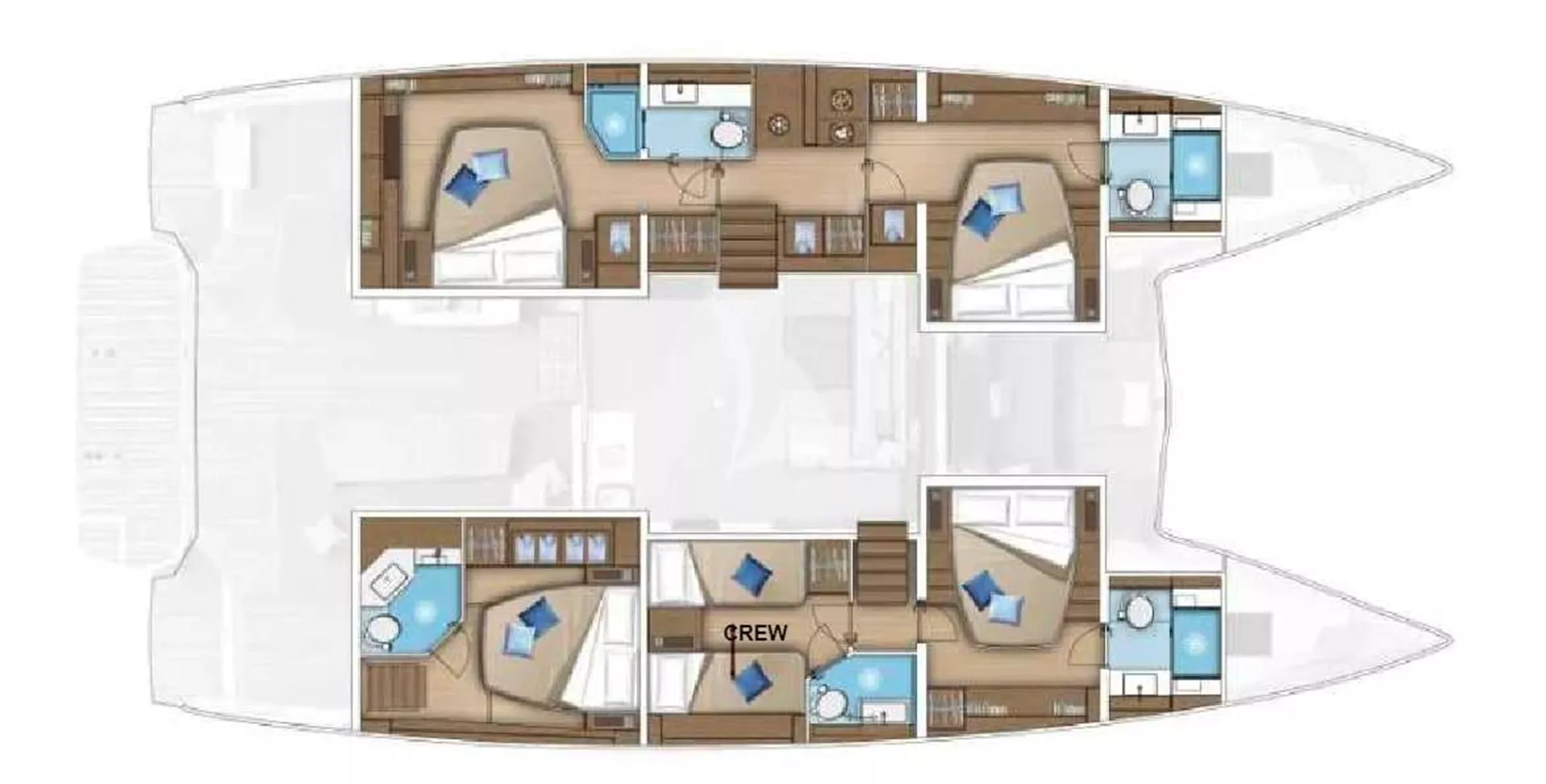 Beneath its stylish facade, the Lagoon 55 houses state-of-the-art technology. Advanced navigation and control systems ensure a smooth and safe sailing experience, engines and all machinery are of the newest standards. Performance is at the heart of the Lagoon 55. With exceptional speed, stability, and maneuverability, this catamaran promises an exhilarating journey on the water. And, in a nod to environmental responsibility, the Lagoon 55 incorporates eco-friendly materials and energy-efficient systems, minimizing its impact without compromising on luxury.