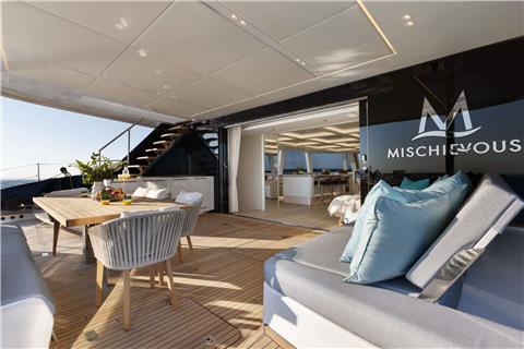 Mischievous is a stunning luxury catamaran, launched in the summer of 2024 by the renowned Sunreef shipyard. This Sunreef 80 model exudes sophistication with its elegant, light-filled interior and striking navy blue hull, designed to captivate the senses.