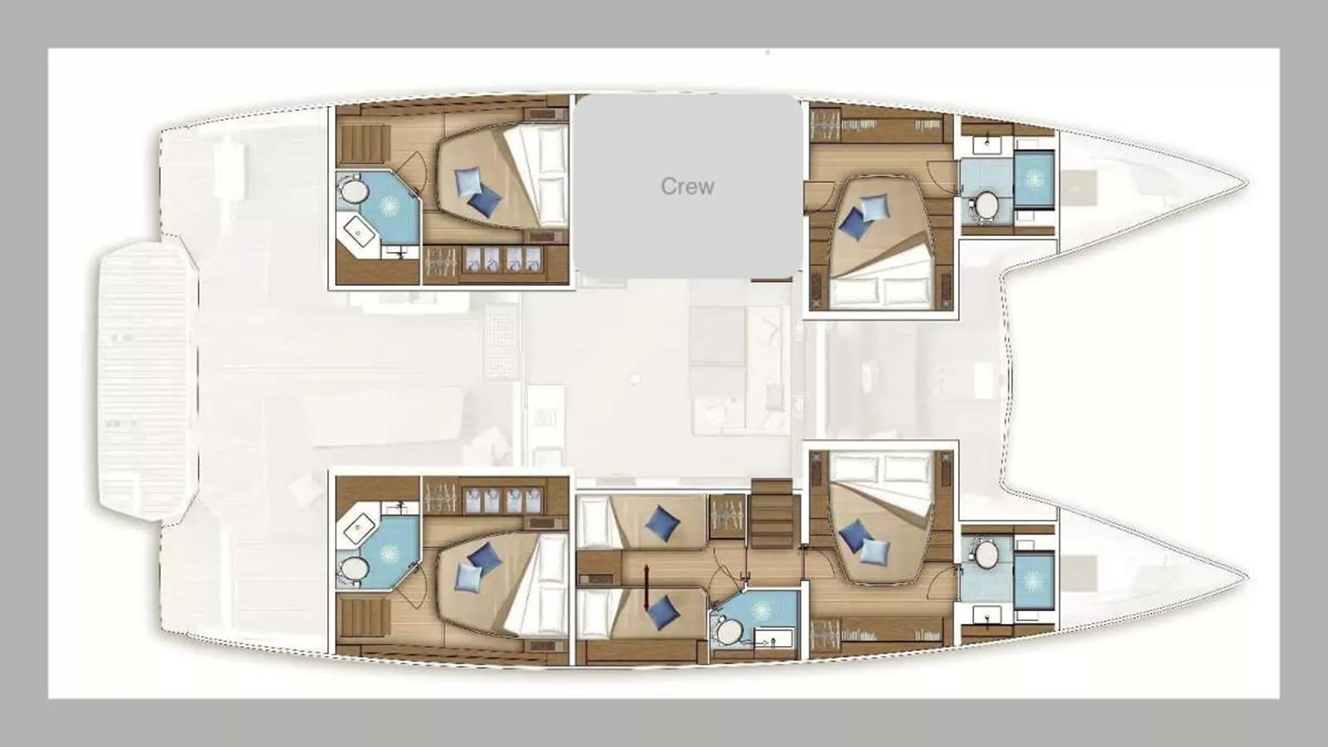 Four Queen cabins and one twin (can be converted in a double cabin) with private facilities and air conditioning