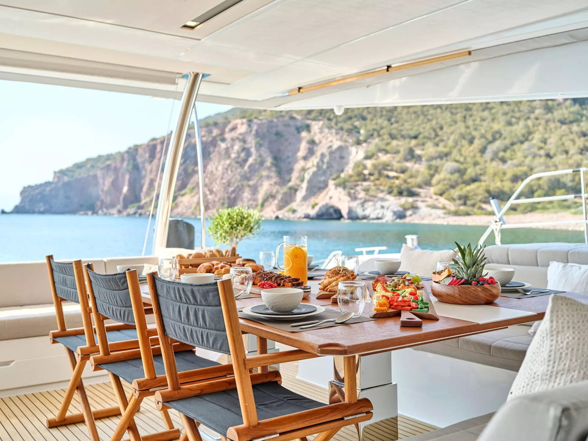 Her dedicated crew of 4, consisting of a captain, chef, stewardess, and deckhand, will make sure to guide you effortlessly through the Greek islands, offering expert navigation, delicious cuisine, and attentive hospitality along the way.