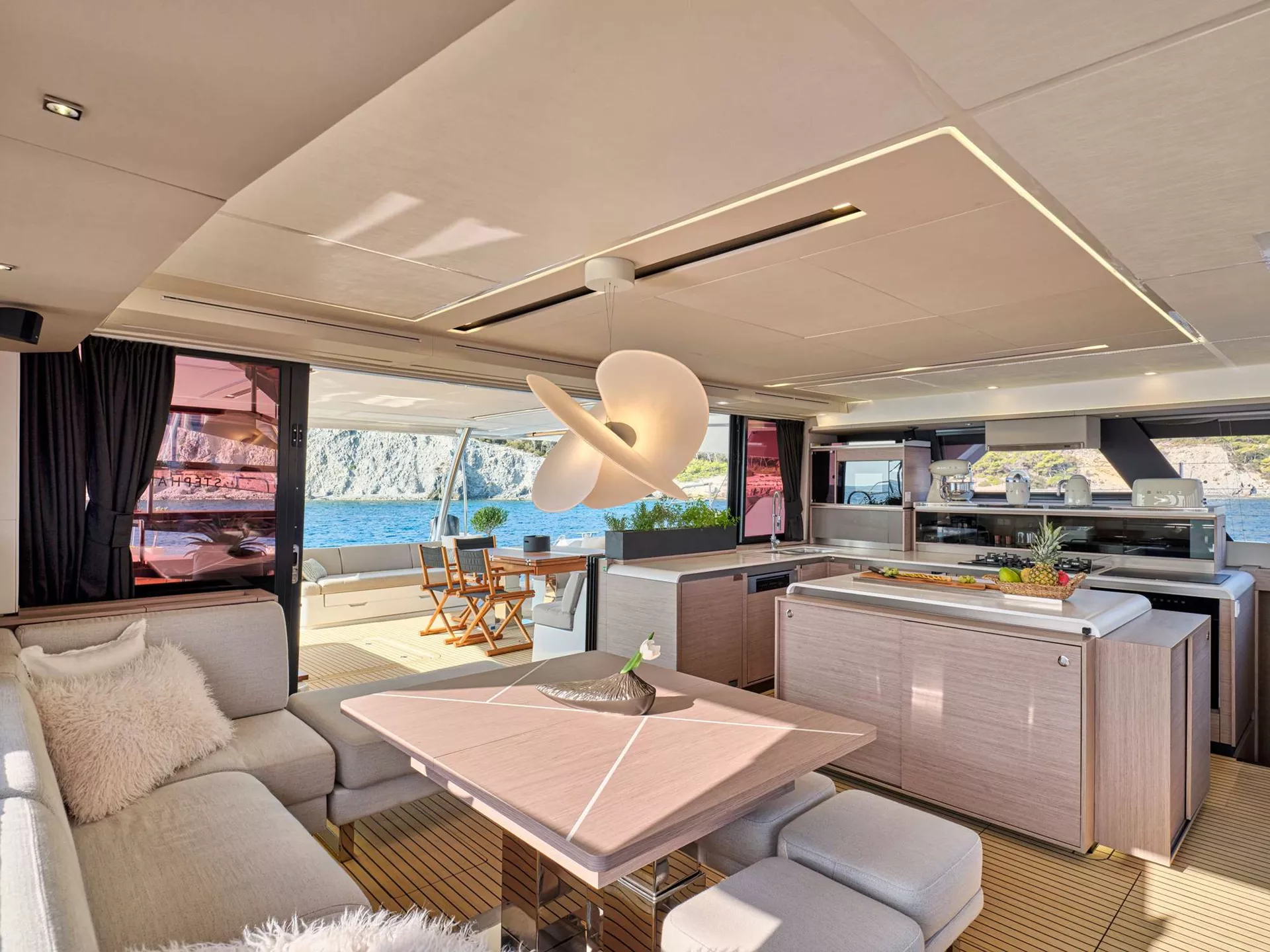 Powered by lithium batteries and solar panels, the yacht offers silent, eco-friendly operation—no generator needed to run the air conditioning at night.