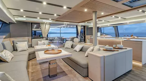 The Fountaine Pajot Thíra 80, christened "Sol Madinina," is a luxury catamaran that epitomizes the height of elegance, comfort, and performance. This extraordinary vessel masterfully combines cutting-edge design with Fountaine Pajot’s decades of maritime expertise and dedication to excellence. From bow to stern, every inch of the Sol Madinina is crafted to deliver a yachting experience like no other.