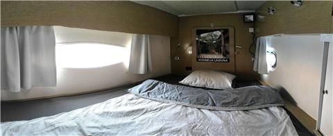 Designed for comfort, Mahana accommodates up to four guests in two spacious cabins, including an exclusive owner's hull, ensuring privacy and relaxation. The owner's suite features a queen-size bed (1.60m x 2.0m), a private ensuite bathroom, ample storage, and breathtaking sea views through panoramic windows—perfect for waking up to the Caribbean sunrise.