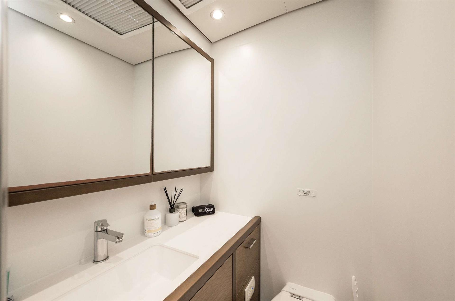 Atlantia’s all-teak decks create an elegant setting, while her expansive bow and stern lounge areas provide the perfect spaces to unwind. Outdoor amenities are second to none, with two refrigerators, sinks, and an ice maker to ensure guests are always refreshed. At the helm, cutting-edge navigational equipment and state-of-the-art technology ensure a seamless and safe voyage.