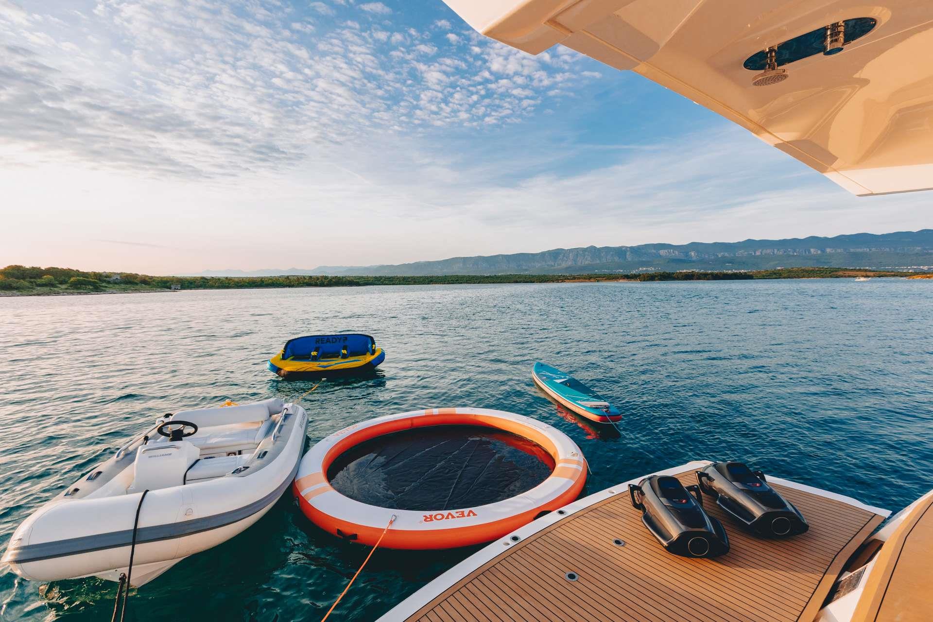 Below deck, three beautifully appointed cabins offer comfort, privacy, and tranquillity, making X2 perfect for families or groups of friends. Generous outdoor spaces invite guests to lounge, dine alfresco, and soak up the Adriatic views, while the beach club provides easy access to the sea. Stabilisers both underway and at anchor ensure a smooth, comfortable experience in all conditions.