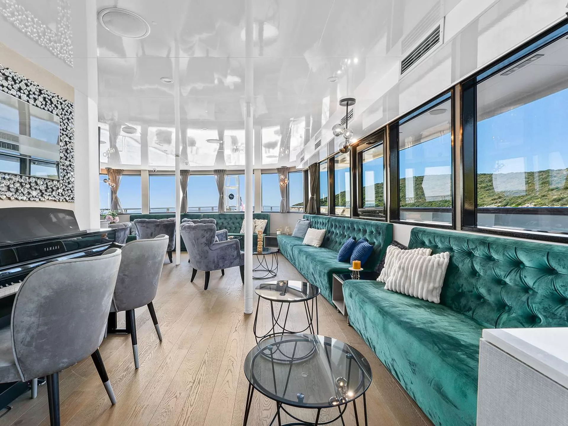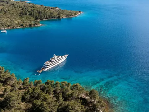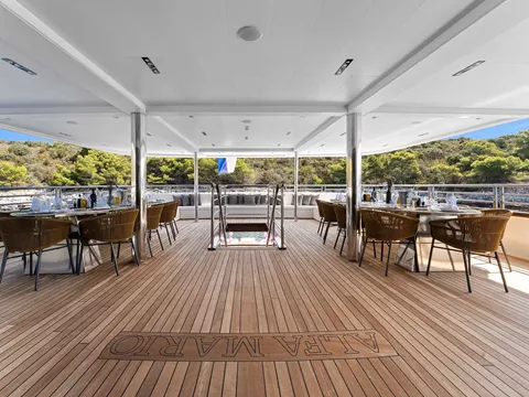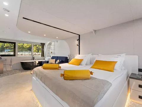 At 52 meters, Alfa Mario is one of the largest Croatian yachts of its type. This 18 cabin yacht can accommodate up to 36 people, hosted by 9 crew. You can enjoy the jacuzzi, sauna, and gym on deck. To enjoy a relaxed vibe, there is a big lounge bar with a piano and a well-stocked bar in the salon.
