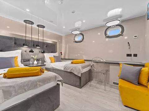 2 Convertible cabins (double or twin) with 2 single beds. Private bathroom with shower box and home-type toilet.