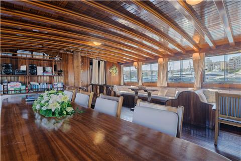 20 guests can be accommodated in 10 cabins, 2 double and 8 twin.
