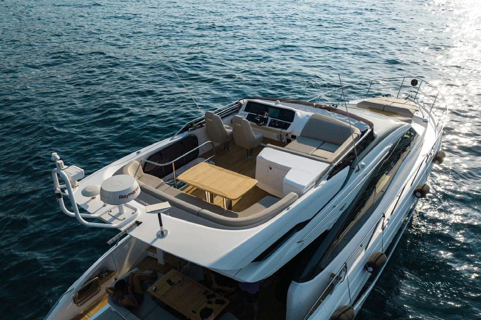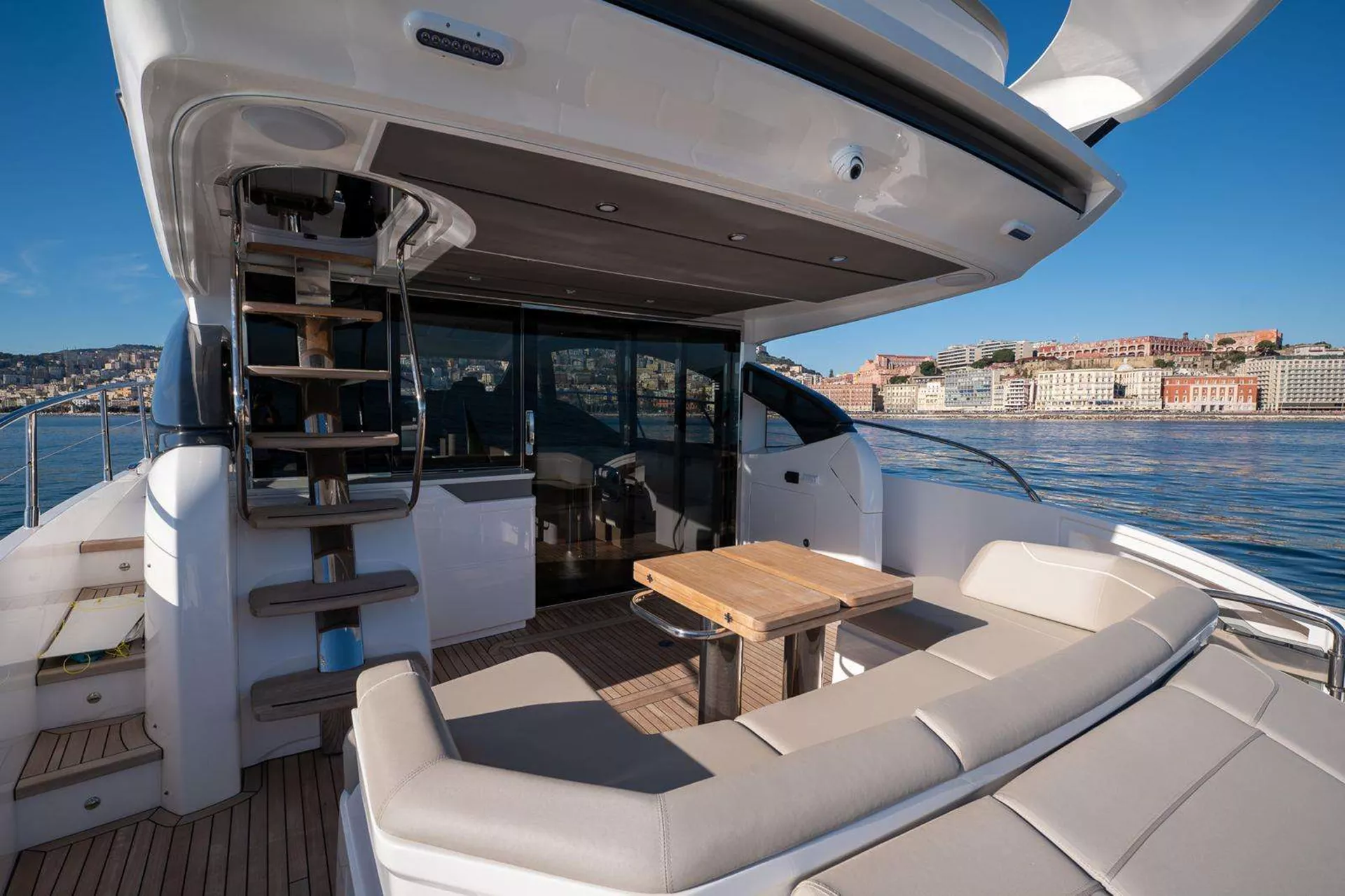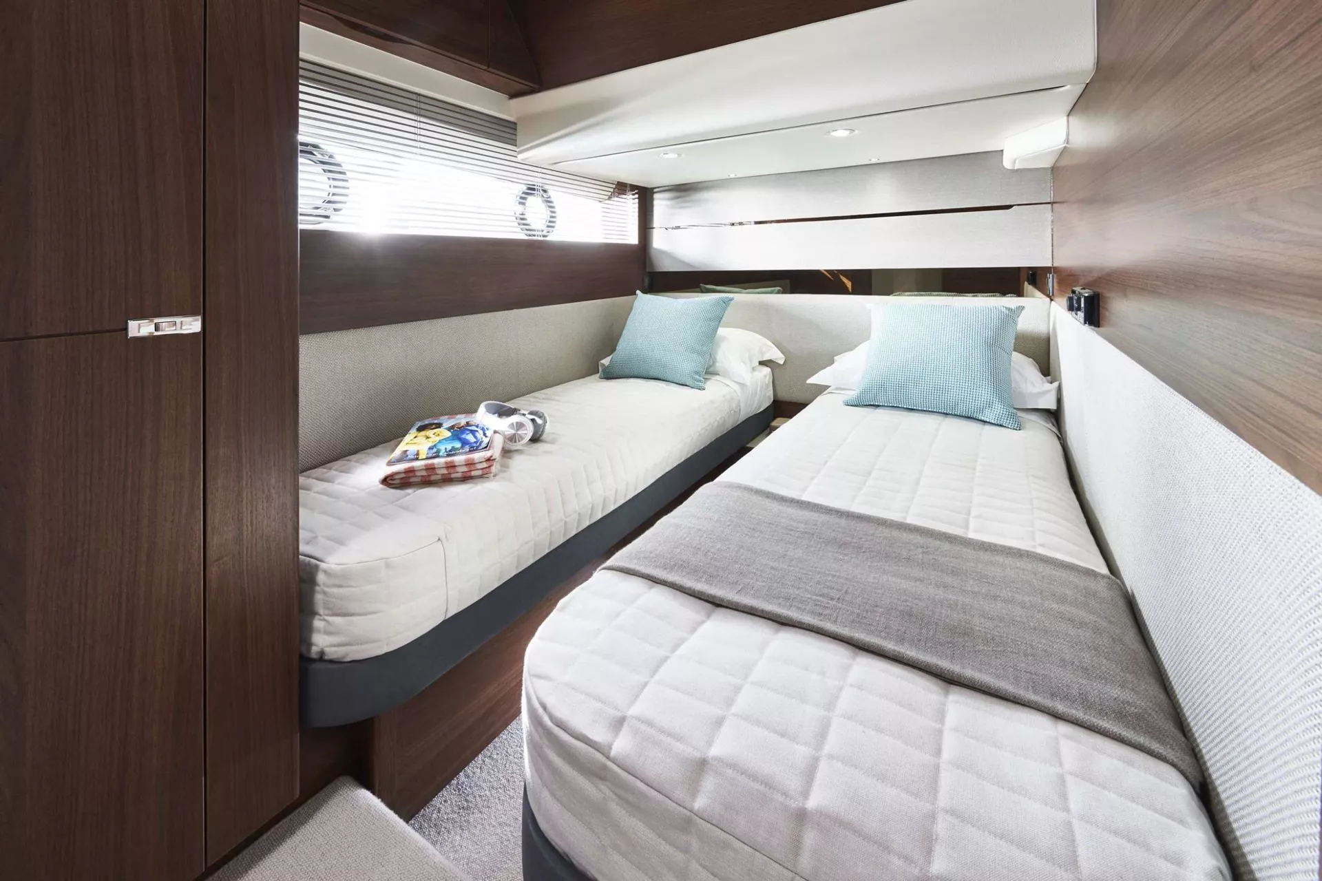On the lower deck, six guests are comfortably accommodated across 3 cabins: an en-suite full-beam owner’s stateroom with ensuite bathroom, one Vip Cabin, one Twin cabin convertible into double.