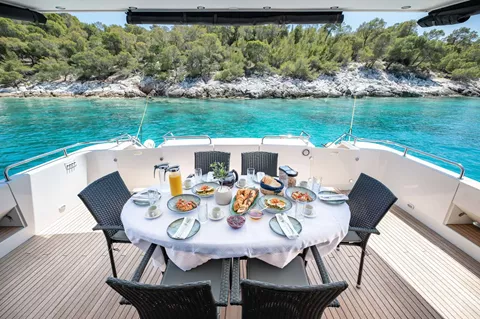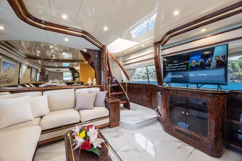Step aboard WISH, a timeless 27.20m (89.3ft) Alfamarine motor yacht that perfectly blends classic elegance with modern comfort. Refitted in 2025, WISH accommodates up to 10 guests in 4 beautifully appointed en-suite cabins, delivering a relaxing and stylish charter experience. Her spacious salon and generous deck areas create inviting spaces for socializing, dining and sun lounging, while her professional crew of 5 ensures personalized service throughout your journey. With reliable performance and an excellent selection of water toys, WISH is ideal for unforgettable escapes exploring iconic destinations across Greece and beyond.