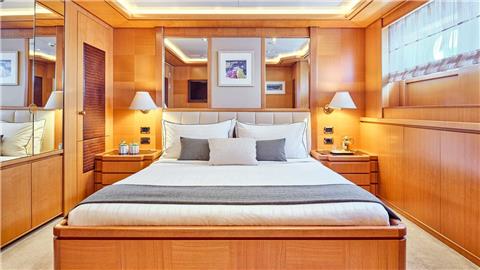 Lower Deck: Two Double cabins with Queen beds (165 cm x 195 cm) and two Twin cabins with Single beds (90 cm x 192 cm), one featuring a Pullman bed