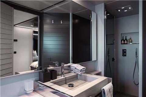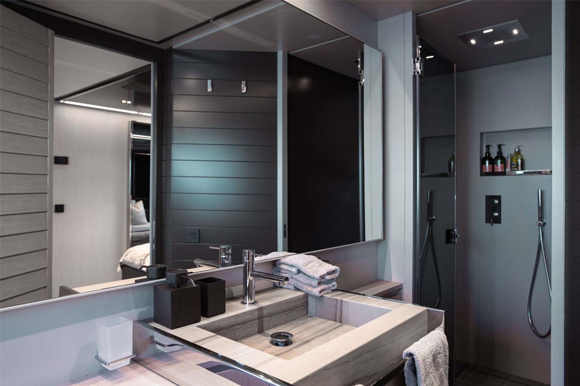 The Master Suite, located on the main deck, is a private sanctuary featuring elegant furnishings, a large wardrobe, and a stunning en-suite bathroom — the perfect retreat for moments of calm and “vitamin sea.”