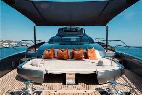 Meanwhile, the bow offers yet another private haven — ideal for sunbathing or quiet contemplation as the yacht glides through the waves.