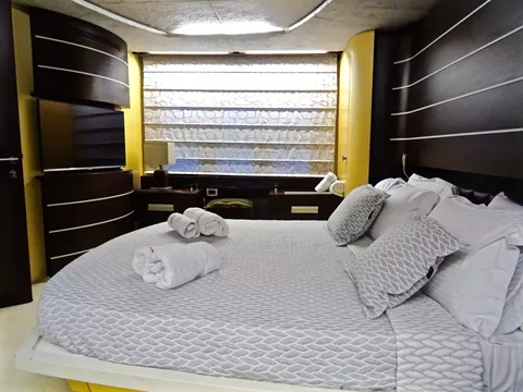 This 86ft /26,20m motor yacht was built in 2005 by Azimut and lastly refitted in 2022. She can accommodate up to eight guests in her four elegant en-suite cabins. Perfect choice for Ionian charters as she is based in Corfu. She offers a vast variety of water toys including Tender ZODIAC PROJET 350, Seabob, Water Skis Adult, Snorkeling Equipment, Tubes, Banana, 2 stand up Paddles, 2 Sea Scooters Aqua (and Jet Ski Sea-Doo Spark upon request). Her four crew members will do every effort to meet all your wishes.