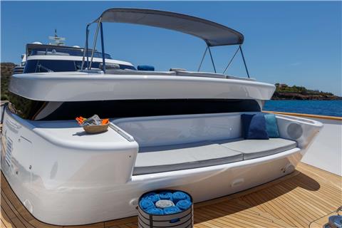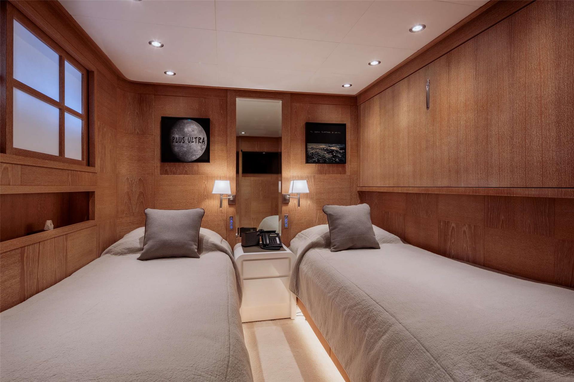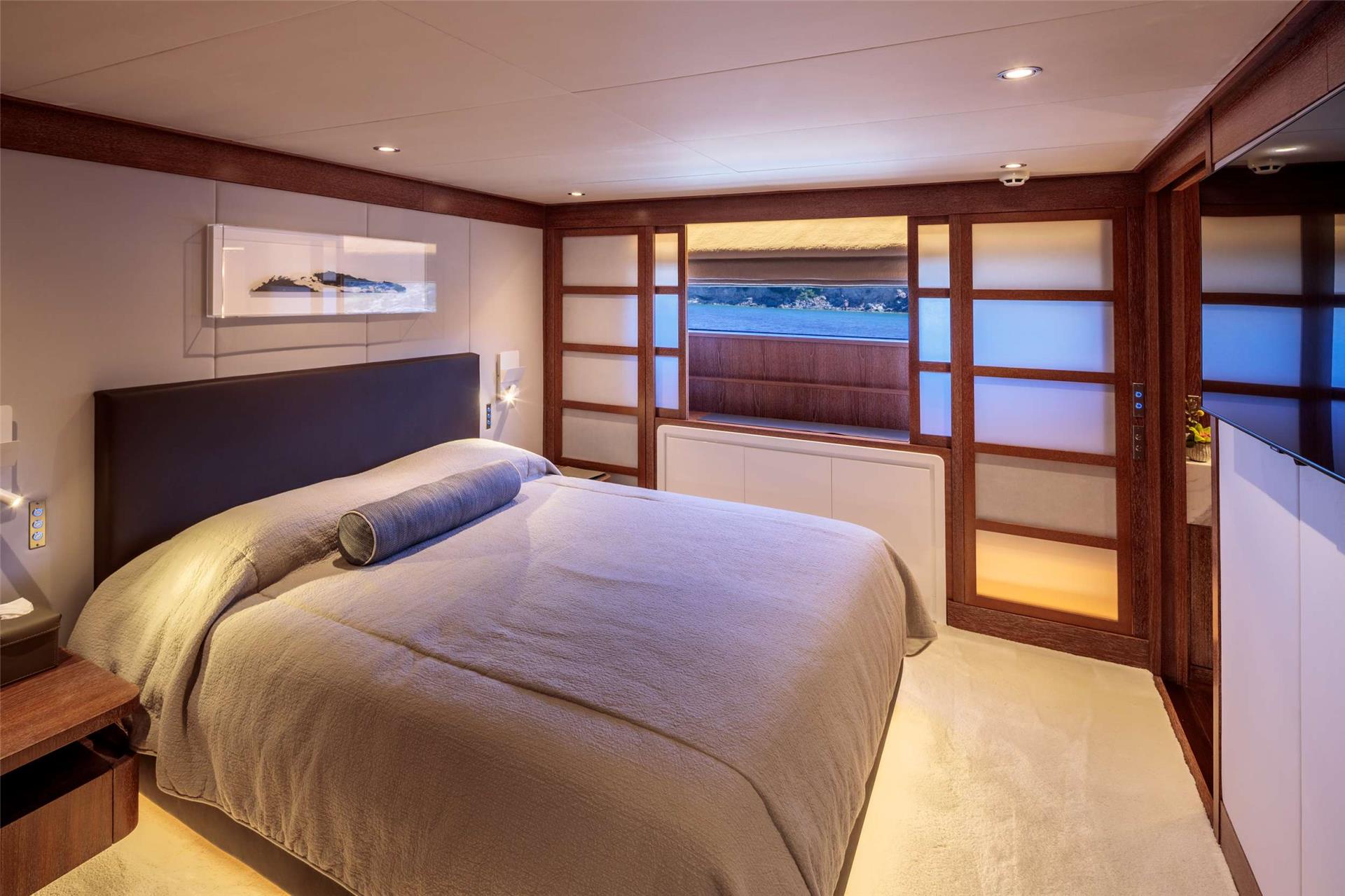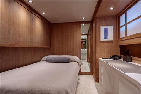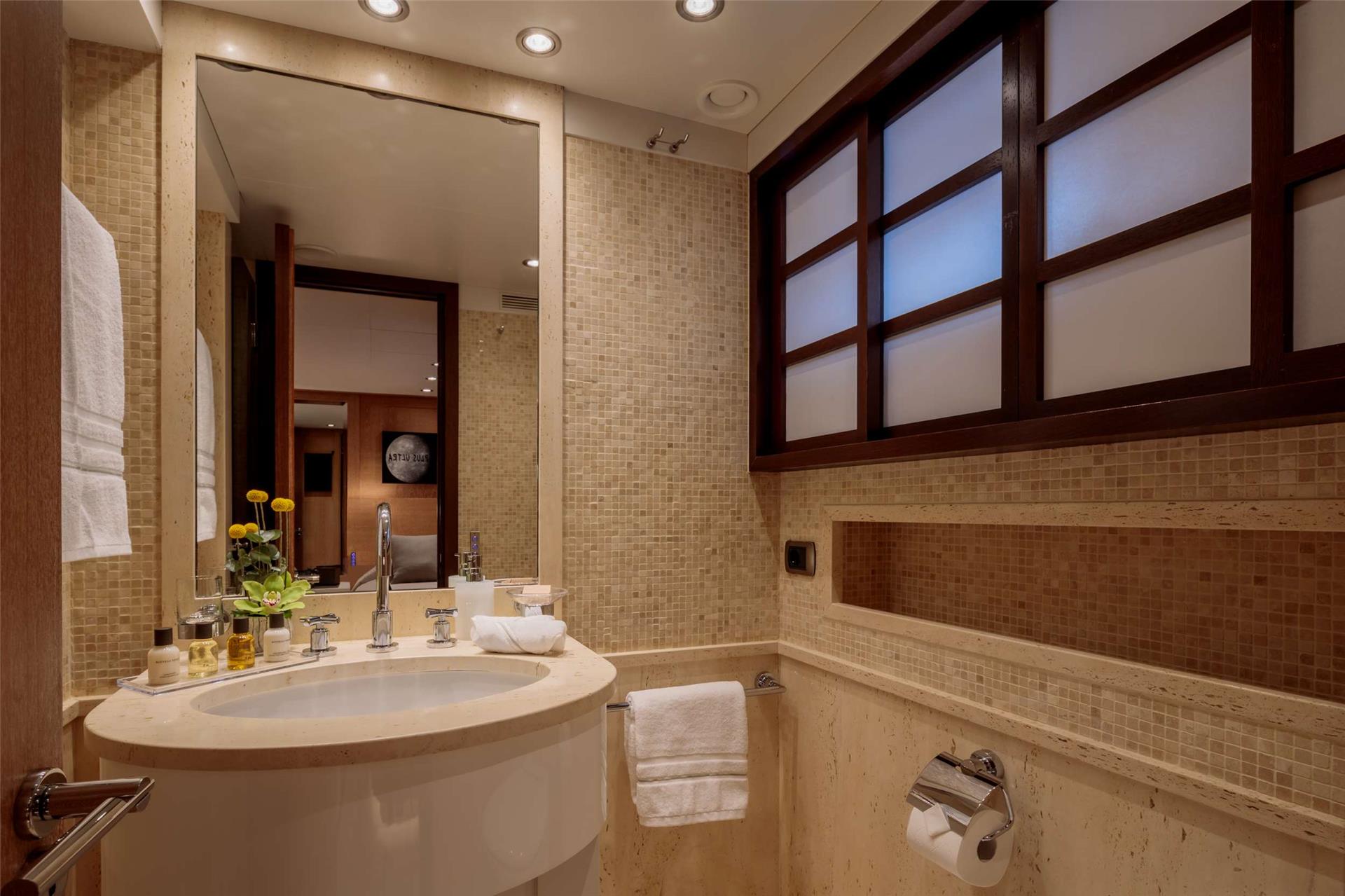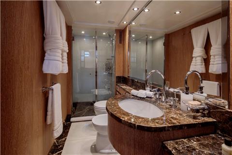 M/Y Shooting Star can welcome up to 12 guests in five en-suite cabins. There is a full beam Master and VIP cabin on lower deck and a double on the main deck. One double and one twin are positioned on the lower deck.