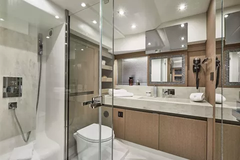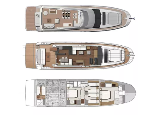 Brand new 20,46m (70’4’’) luxury motor yacht based in Croatia. This refined and chic flybridge cruiser, designed by the renowned Garroni Design cabinet, is made to pamper guests with maximum comfort. Combining luxurious interior finished throughout, she accommodates up to eight guests in four spacious and luminous cabins. From the galley aft, the 360-degree panoramic views to the interior saloon, and the separate access to the master cabin, the Prestige 690 model has numerous stand-out features usually seen on much larger yachts. Notably great 22 m2 hardtop flybridge with an electric sunroof. Yacht also features a fully wireless 3-zone Sonos sound system: in cockpit, saloon, and on the flybridge. Two highly professional crew members provide excellent service and will go the extra mile to cater for your every wish. Whether you're looking for a romantic getaway or a fun-filled family adventure, Prestige 690 is the perfect choice for the Croatia yachting holiday you will never forget.