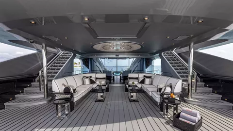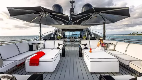 Prioritizing convenience and comfort, an elevator graces this four-decked marvel, enhancing accessibility from the lower guest areas to the bridge deck. Ascending to the upper deck, a circular cinema room transforms the high seas into a silver-screen haven—an ideal retreat for cozying up after a day of maritime adventures. For those with a penchant for activity, an indoor gym occupies the prime spot beside the Jacuzzi, offering panoramic views. This space stands as one of the most magnificent places to break a sweat on any superyacht, emphasizing the vessel's commitment to those who revel in doing so. This yacht caters to enthusiasts, evident in its extensive array of water toys tailored for active charter clients. 3 tenders accompany an impressive lineup that includes jet skis, sea bobs, wake skates, kneeboards, e-Foils, electric surfboards, and wakeboards and much more. Her professional charter crew will ensure every detail of your experience is unforgettable.