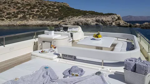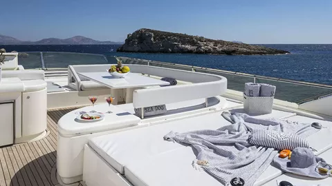 Built in 2002 and freshly refit in 2020, Lazy Days is an 80’ (24.38m) Ferretti-built planing yacht perfectly sized to make the most of a Mediterranean charter. Offering a multi-purpose beach platform, a fresh and elegant interior with newly updated entertainment features and a professional crew highly experienced in providing child-friendly charters, she ticks all the boxes.