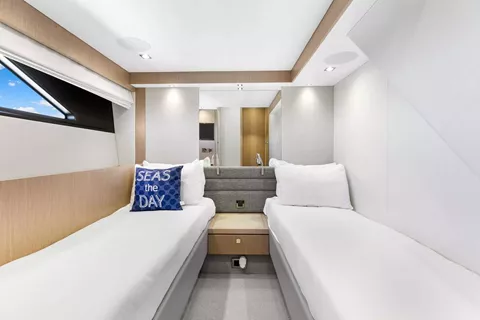 The yacht has a master bedroom with a king size bed, and 3 additional staterooms plus crew quarters