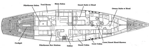 NORTHERN STAR accommodates 6 guests in three cabins. The interior is fully air-conditioned and headroom is 8' to 6'