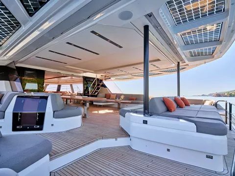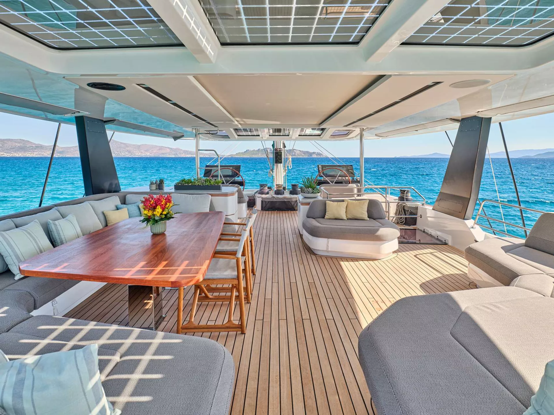 Introducing M/Y Alina, the breathtaking new Power 80 by Fountaine Pajot, a vessel that redefines luxury cruising with its remarkable elegance, spacious design, and innovative style.