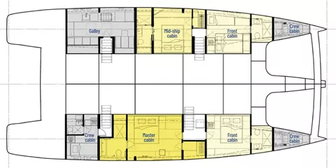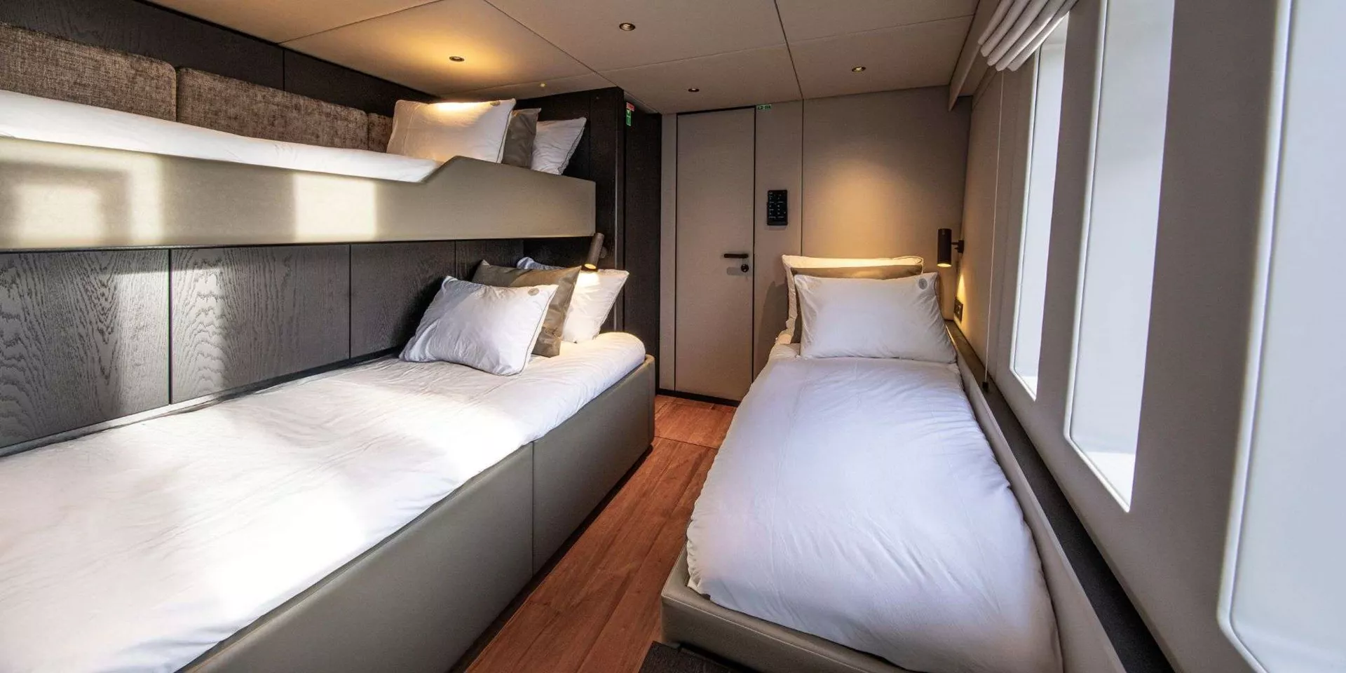 2 queen-sized cabins, 1 convertible cabin, 1 triple cabin