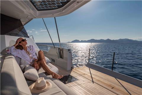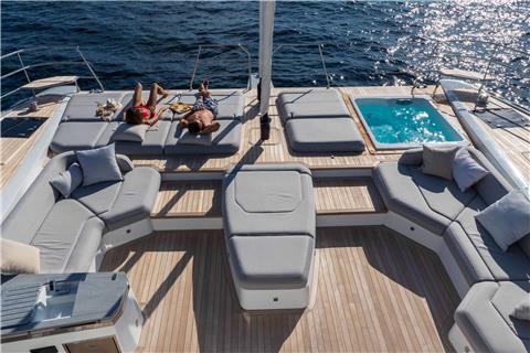 One of her biggest strengths is the sense of volume throughout: wide decks, airy interiors, and a seamless indoor–outdoor layout that makes it easy for everyone to spread out, socialise, or find a quiet corner to unwind. Whether you’re enjoying breakfast in the shade, lounging with a book, or moving between the saloon and aft deck as the breeze comes through, the flow of the yacht feels natural and unforced—perfect for unhurried days hopping between anchorages.