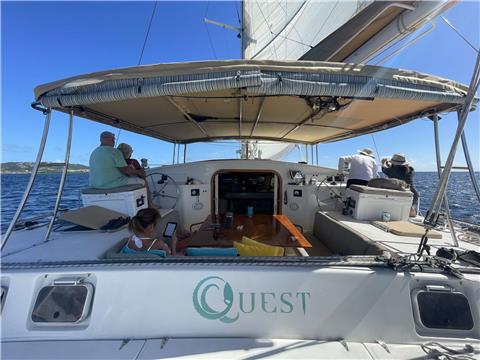 Quest is a custom-built 1991 Alex Simonis catamaran that is equally at home voyaging through open ocean swell or being an adventure platform in a secluded bay. She is a drop-dead gorgeous boat that turns heads wherever she goes.