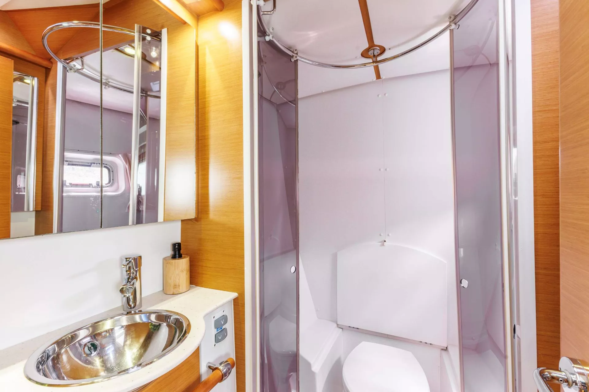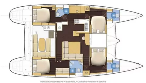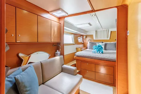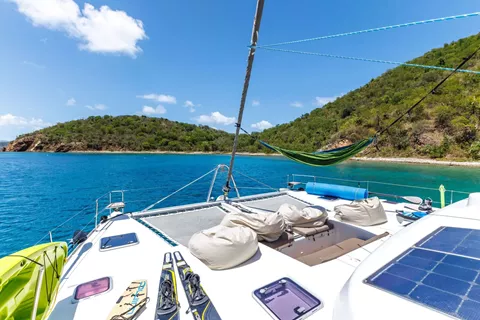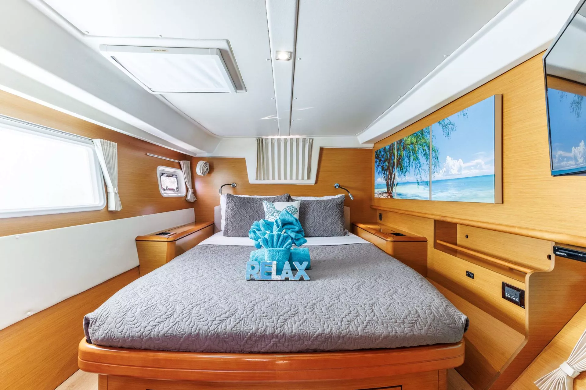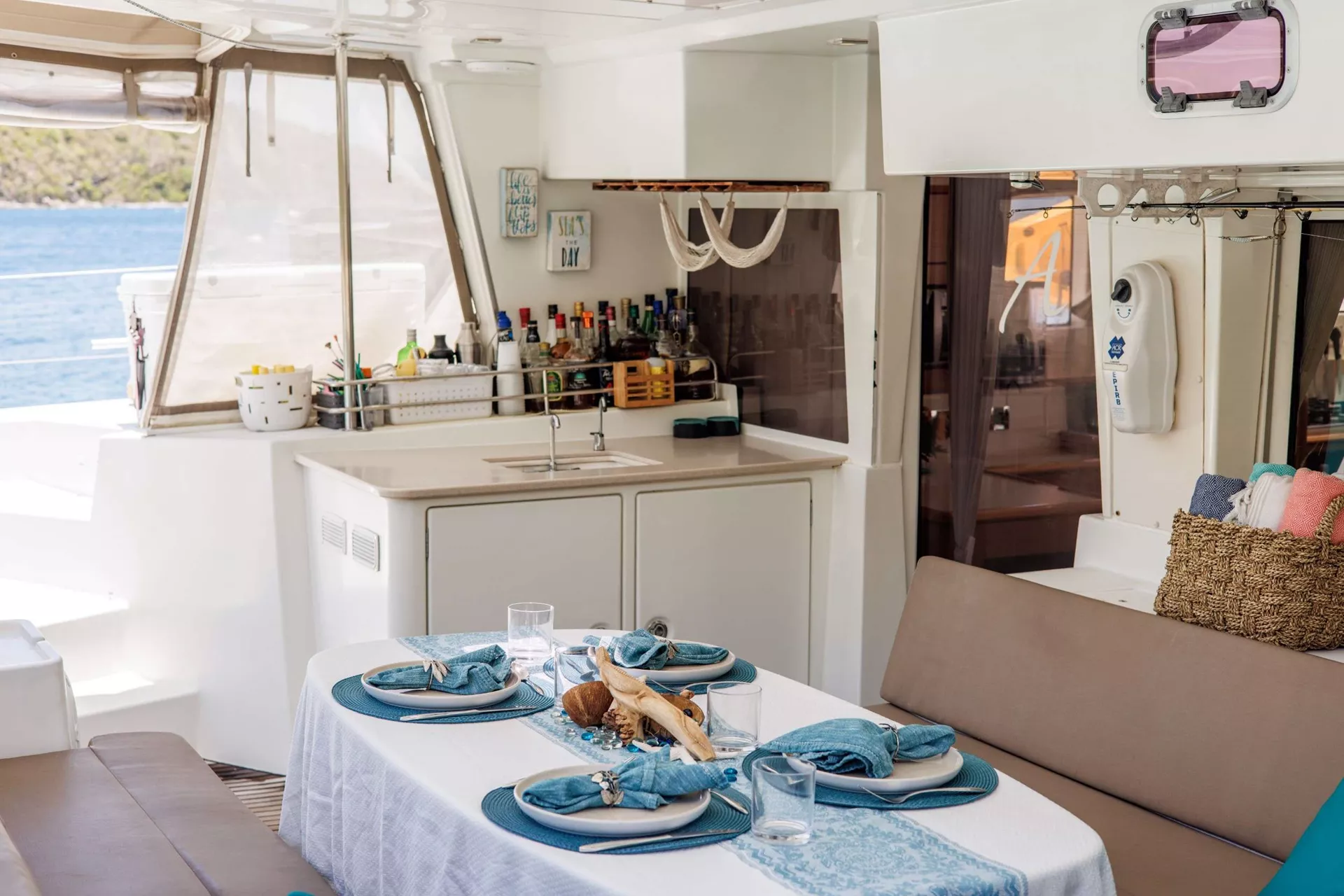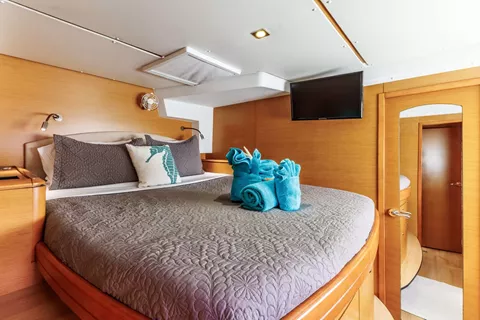 AZURIA is a beautiful Lagoon 50, constantly being refit, offering 3 queen cabins each with private bath. The Primary cabin is larger and includes a private sofa and lounge area. This cabin also has its' own ensuite head with a separate shower stall, electric head and vanity. The other two spacious guest cabins each have a queen size berth, ensuite bathroom with electric toilet and semi-wet shower area.