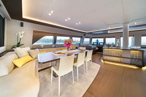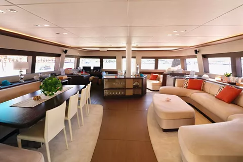 The stunning Lagoon 77' Adriatic Dragon is a catamaran that oozes pedigree and outperforms in her style, comfort, and deck areas.